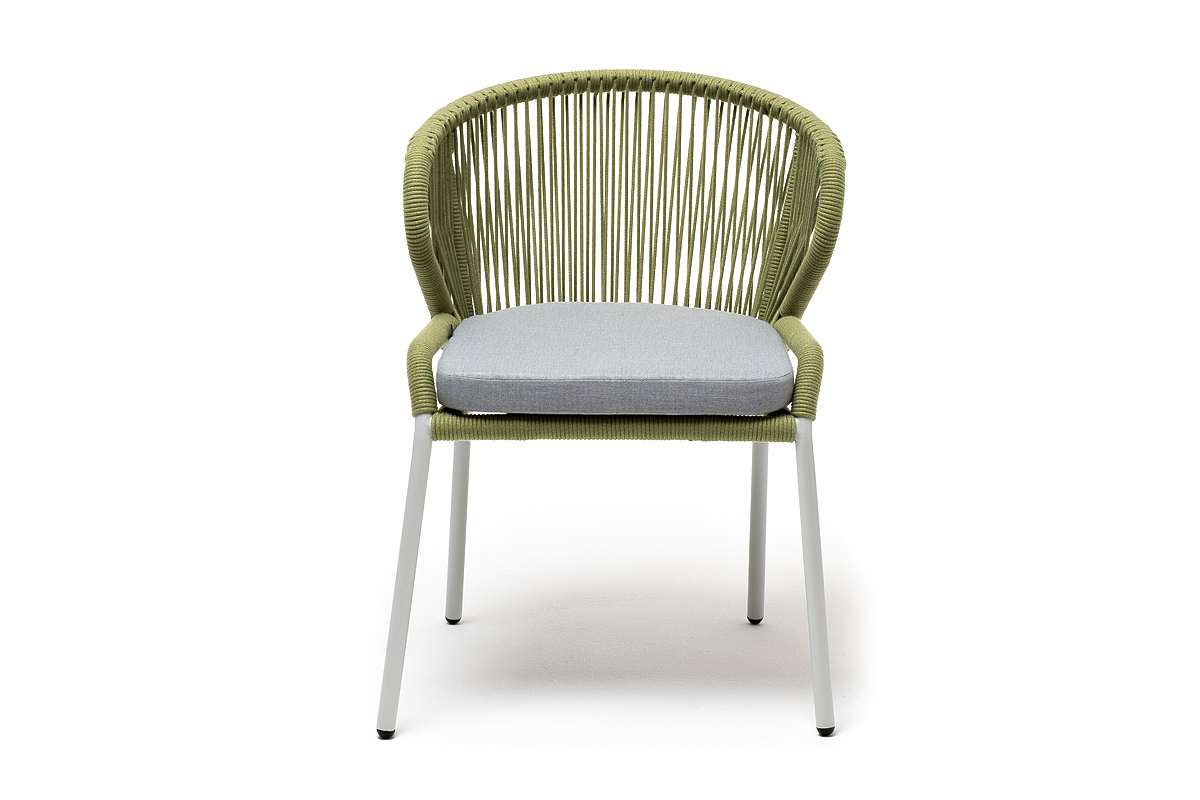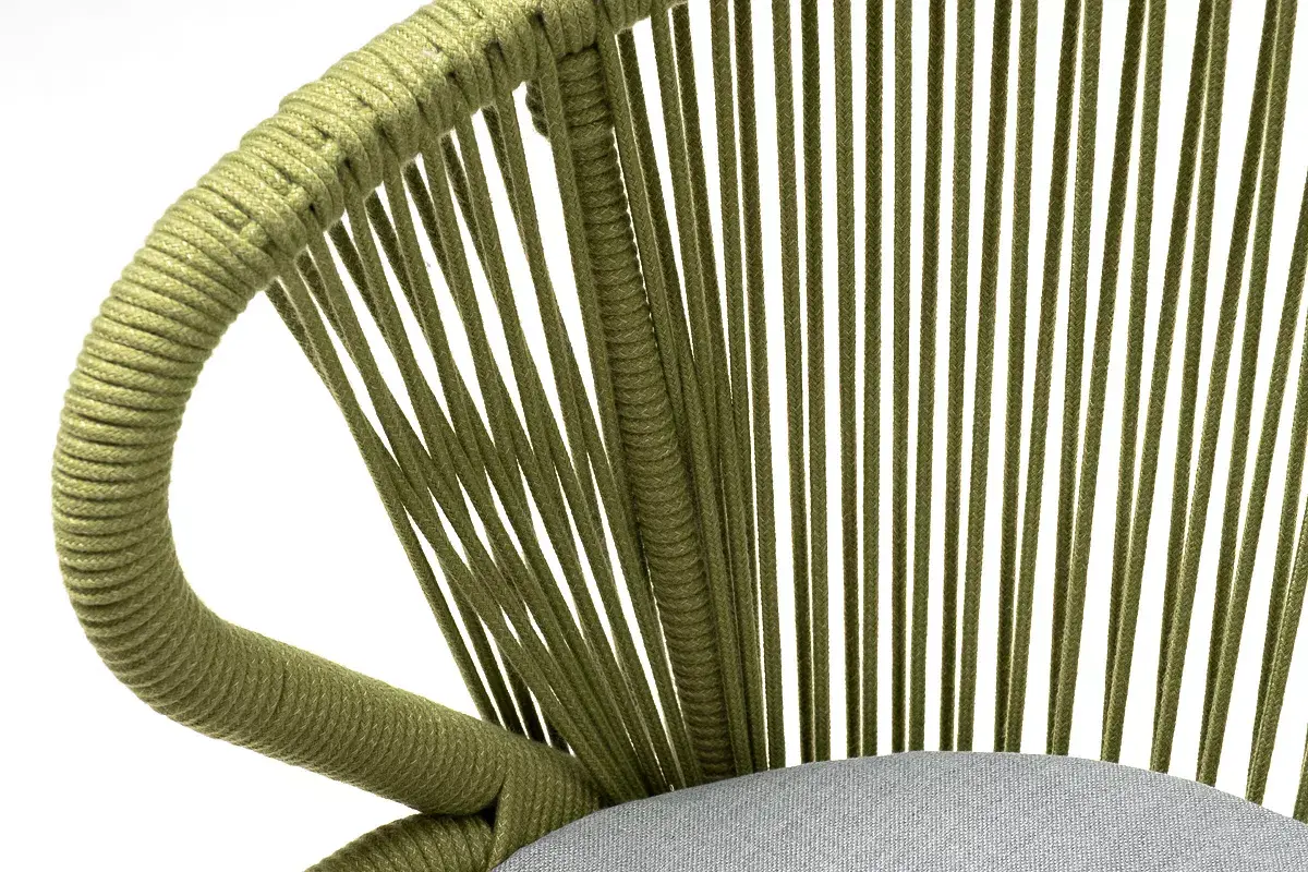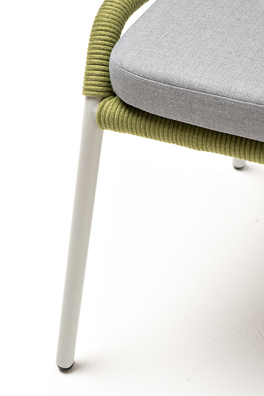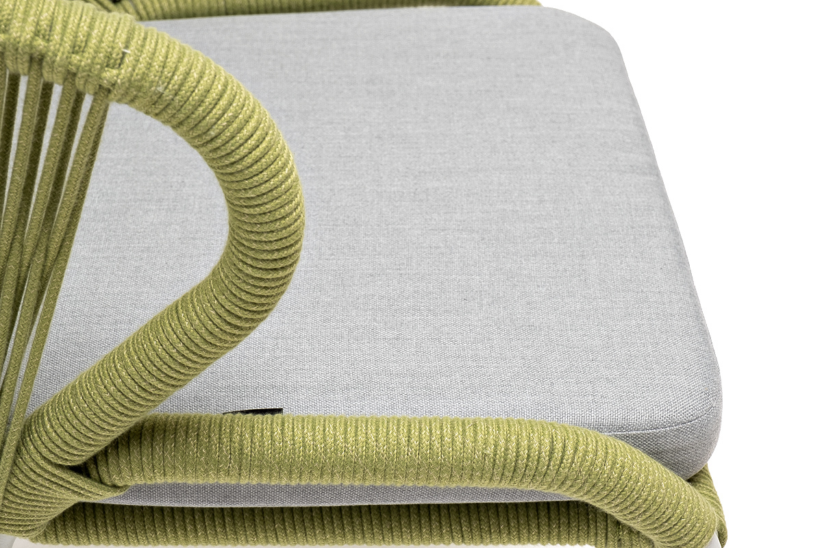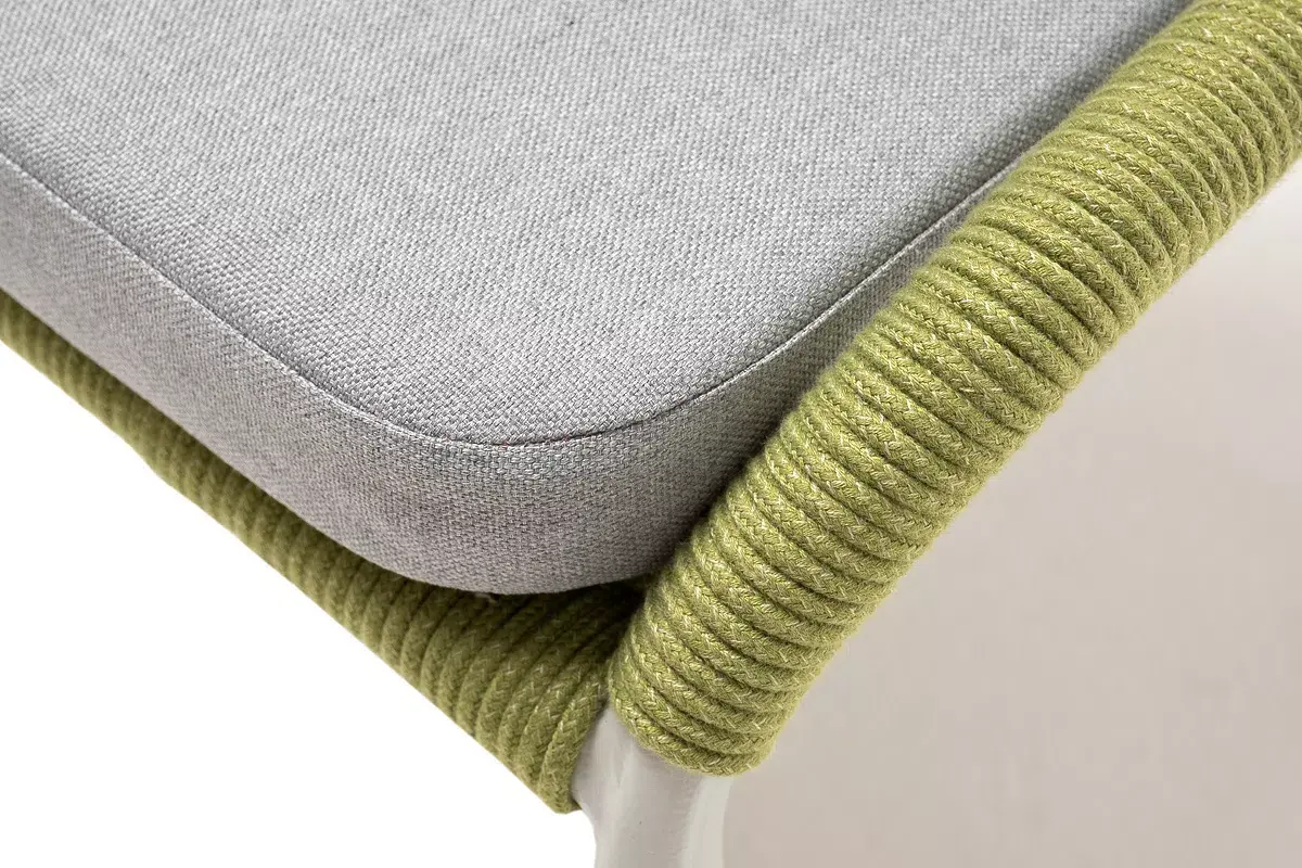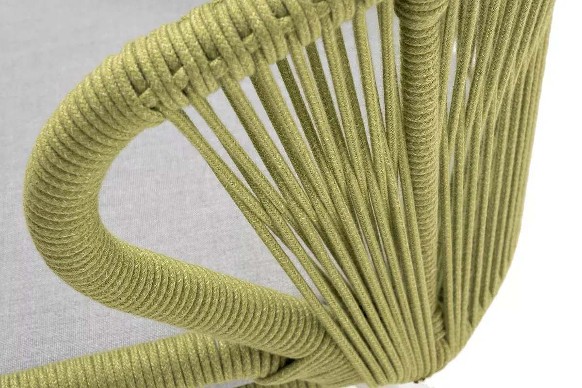 Изготовлен из алюминиевого каркаса, оплетенного вручную эластичными синтетическими лентами из высокопрочных полиэфирных волокон (роуп круглый). Цвет каркаса - светло-серый (RAL7035), оплетки - салатовый меланж.