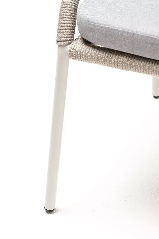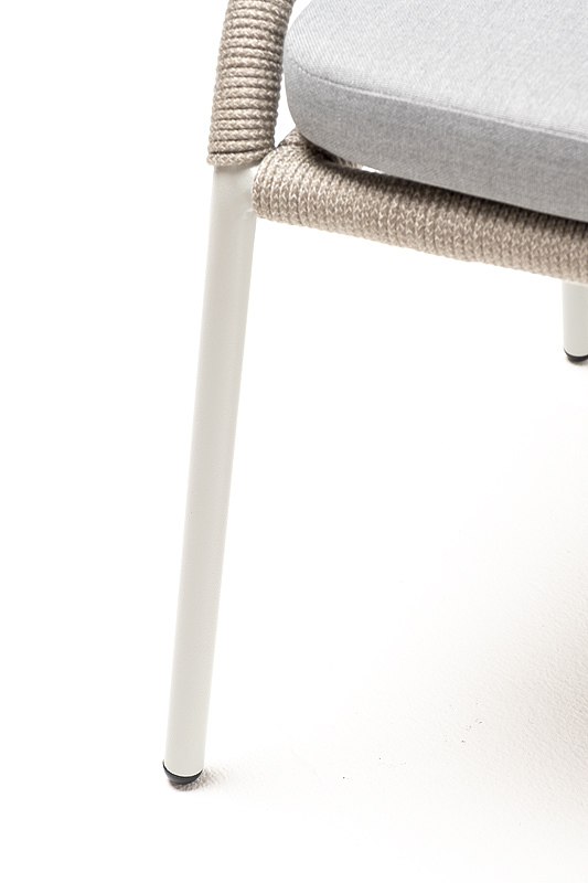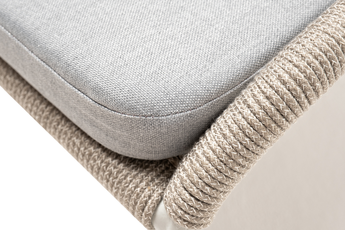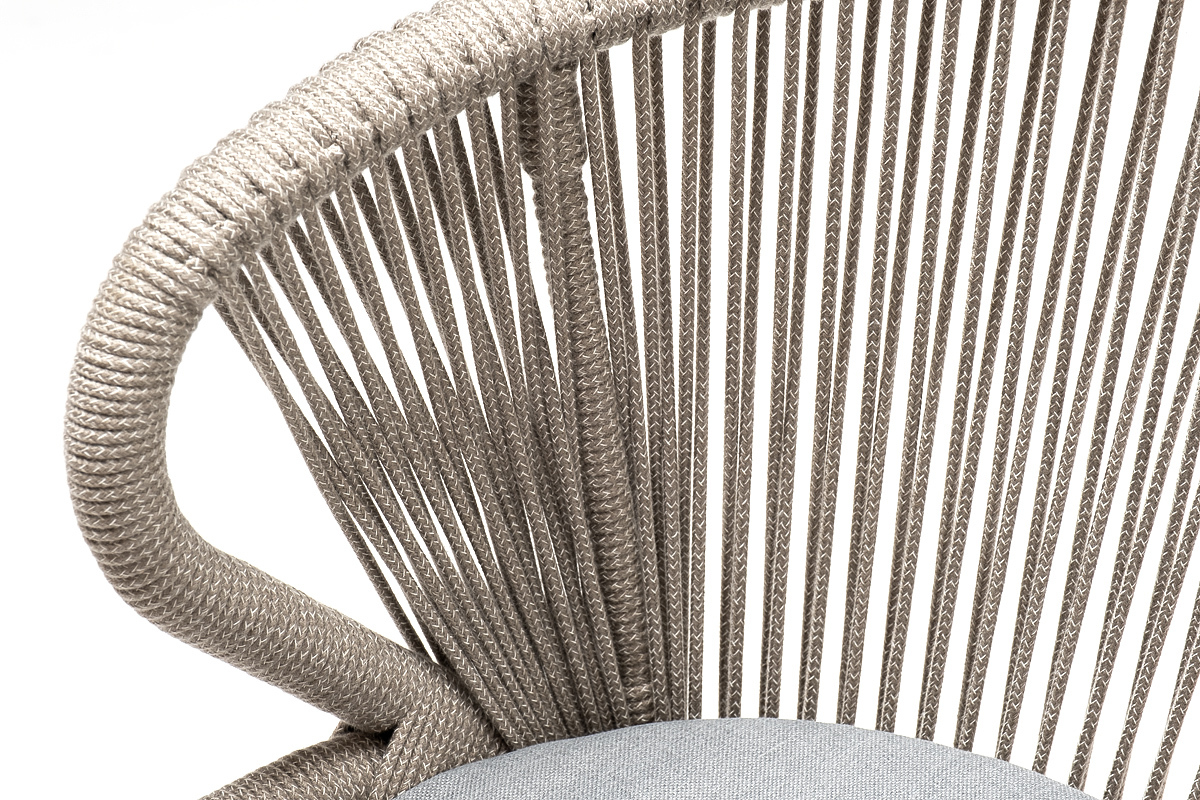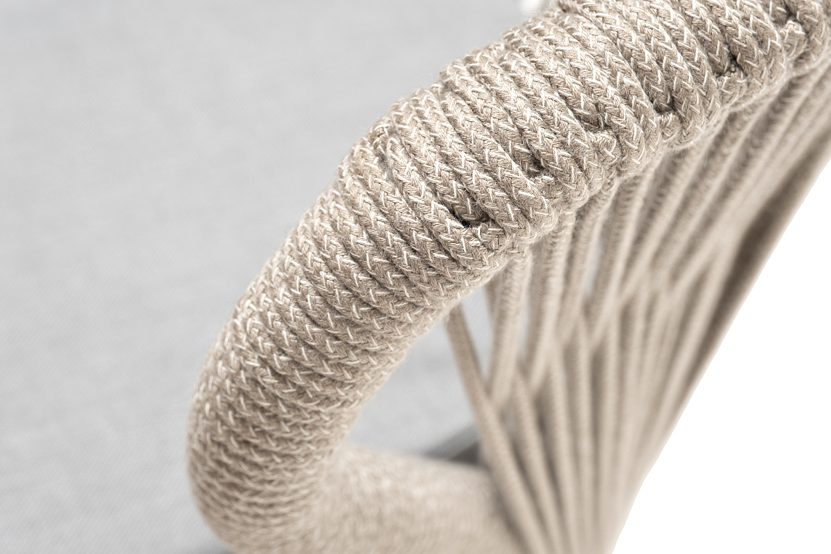 Изготовлен из алюминиевого каркаса, оплетенного вручную эластичными синтетическими лентами из высокопрочных полиэфирных волокон (роуп круглый). Цвет каркаса - светло-серый (RAL7035), оплетки - серый меланж.