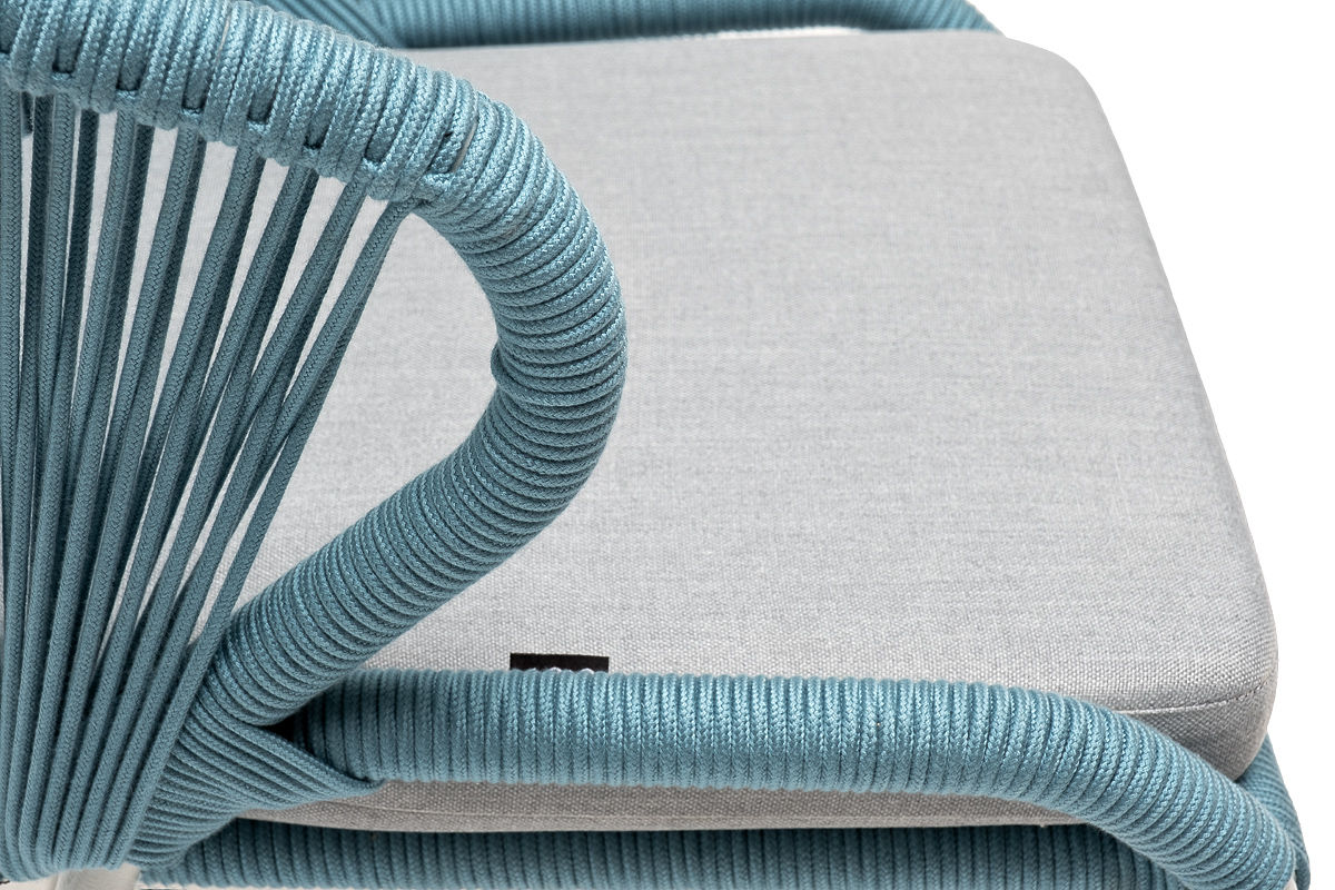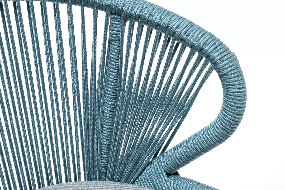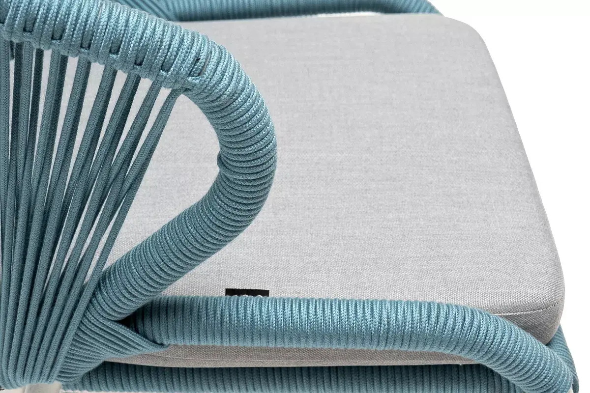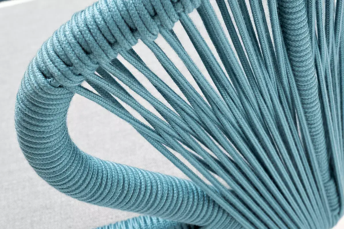 Изготовлен из алюминиевого каркаса, оплетенного вручную эластичными синтетическими лентами из высокопрочных полиэфирных волокон (роуп круглый). Цвет каркаса - светло-серый (RAL7035), оплетки - бирюзовый.
