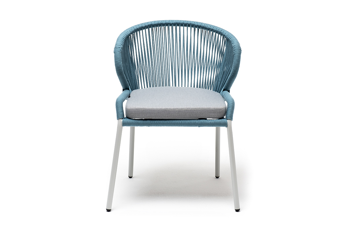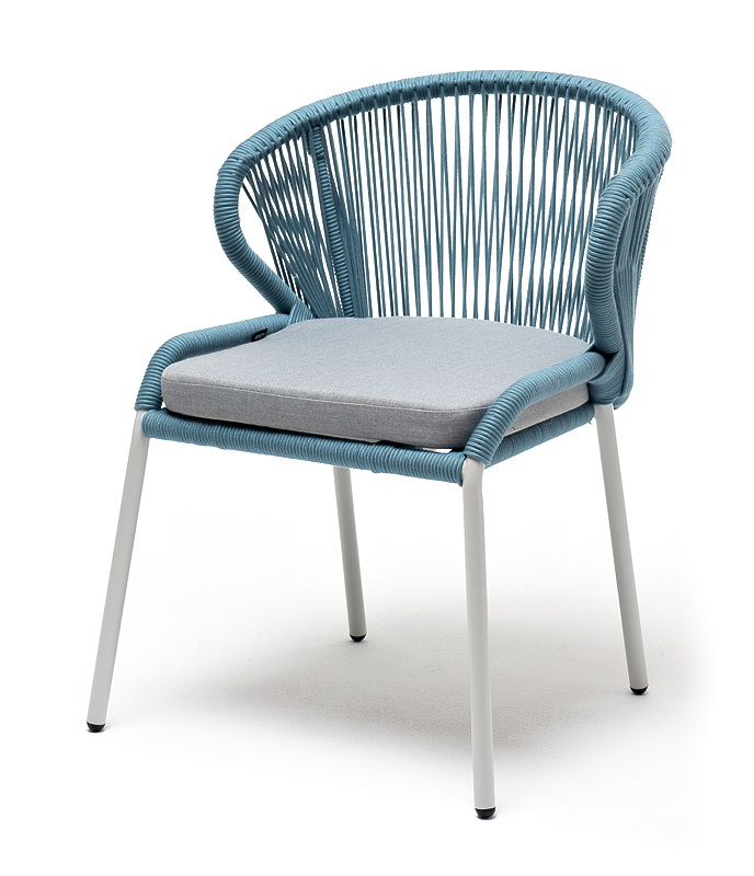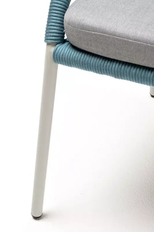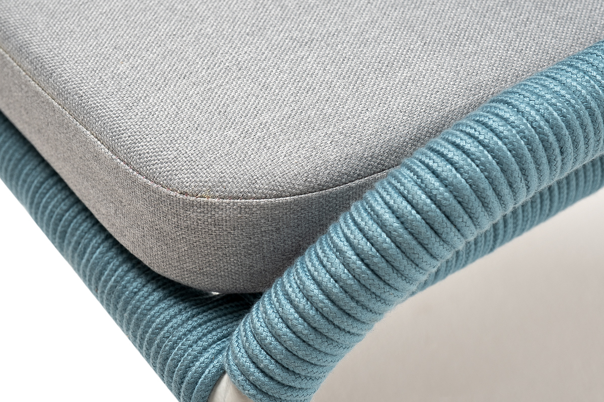 Изготовлен из алюминиевого каркаса, оплетенного вручную эластичными синтетическими лентами из высокопрочных полиэфирных волокон (роуп круглый). Цвет каркаса - светло-серый (RAL7035), оплетки - бирюзовый.
