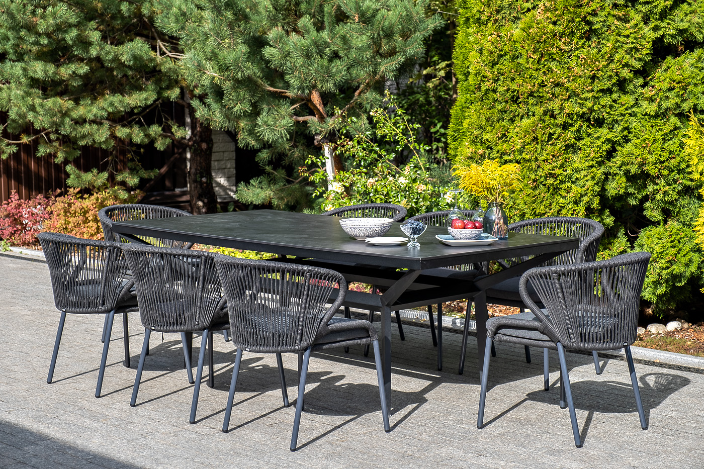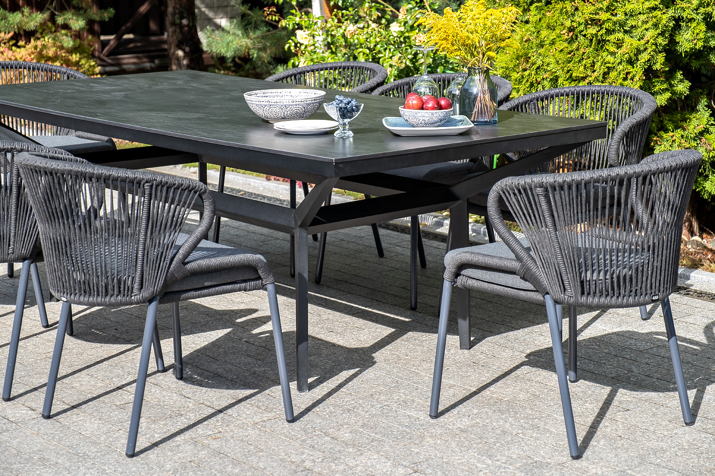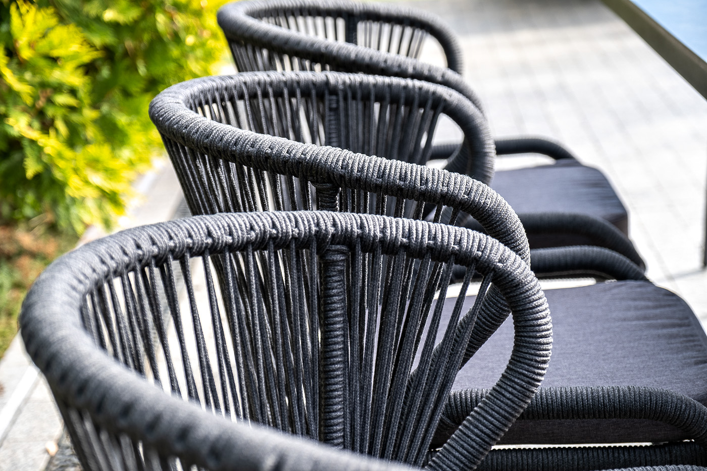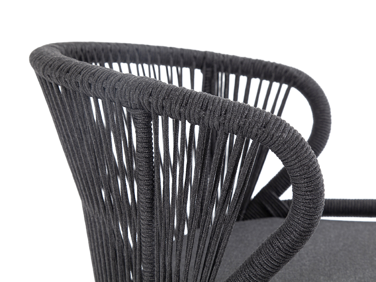 Изготовлен из алюминиевого каркаса, оплетенного вручную эластичными синтетическими лентами из высокопрочных полиэфирных волокон (роуп круглый). Цвет каркаса темно-серый (RAL7024), оплетки - темно-серый.