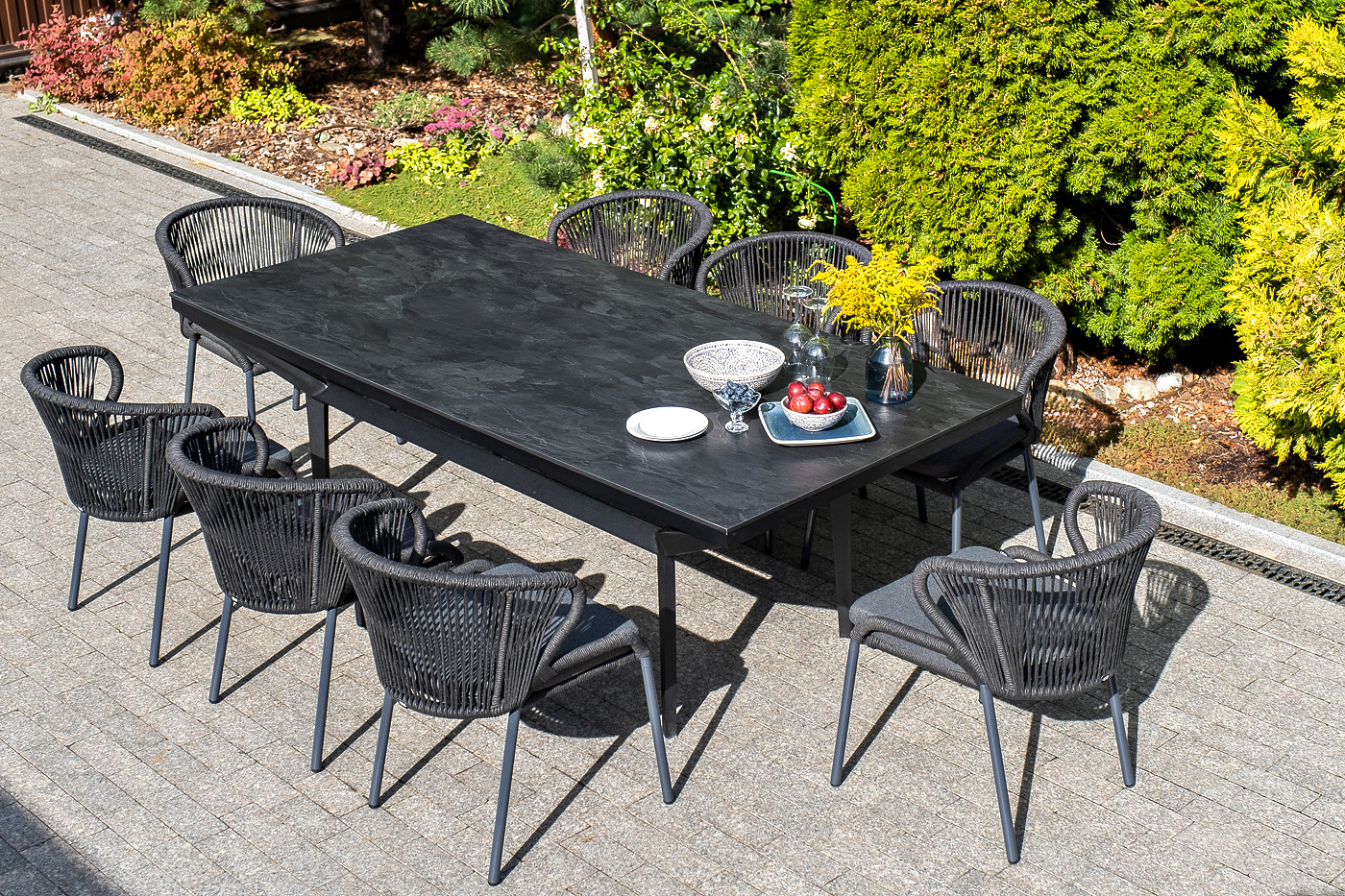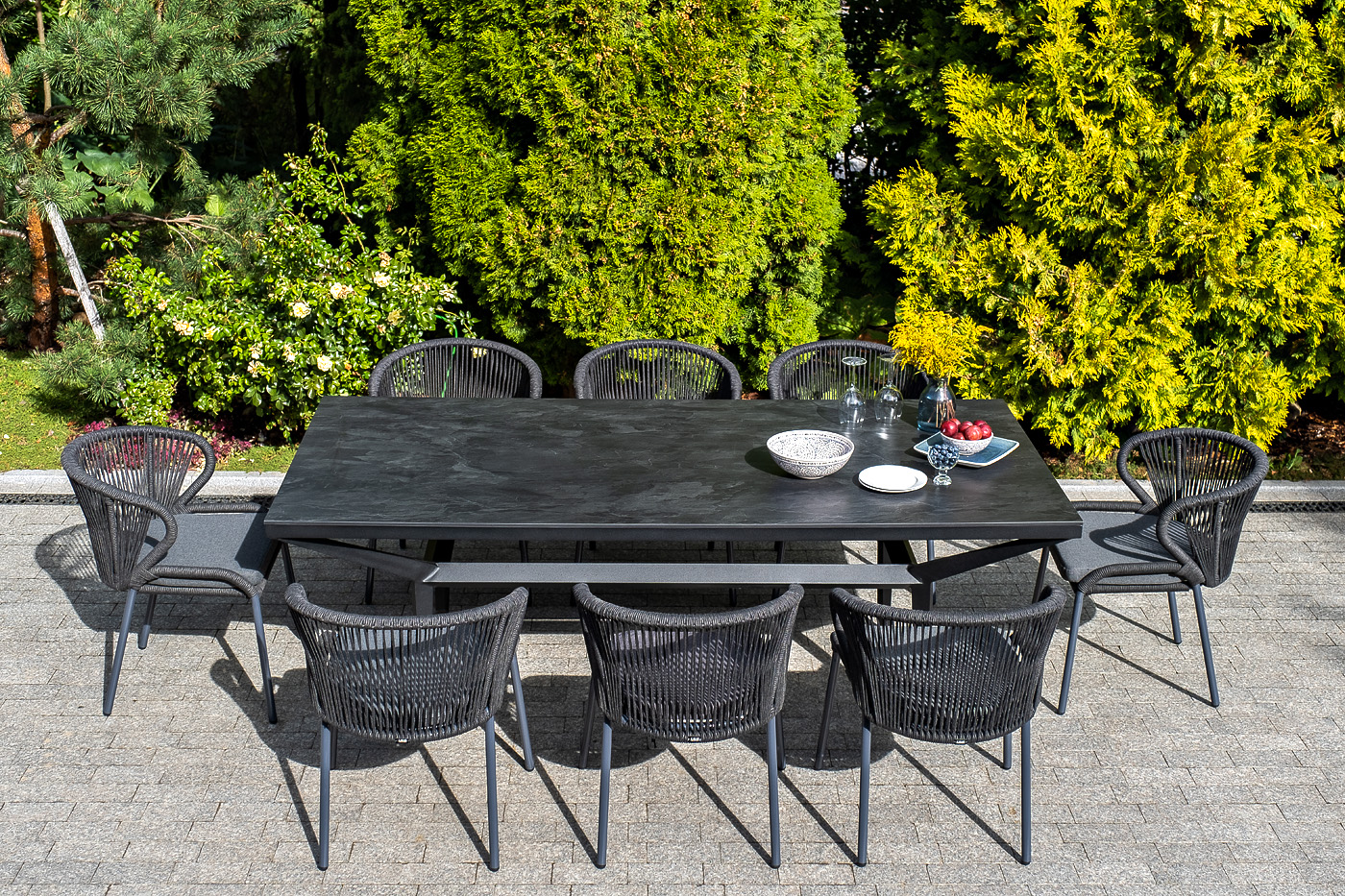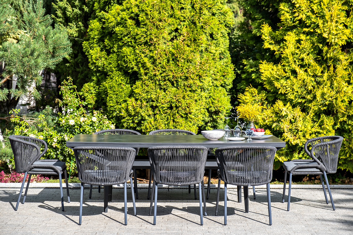 Изготовлен из алюминиевого каркаса, оплетенного вручную эластичными синтетическими лентами из высокопрочных полиэфирных волокон (роуп круглый). Цвет каркаса темно-серый (RAL7024), оплетки - темно-серый.