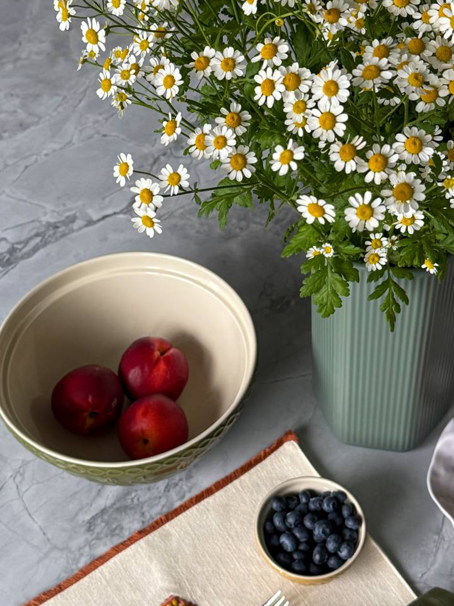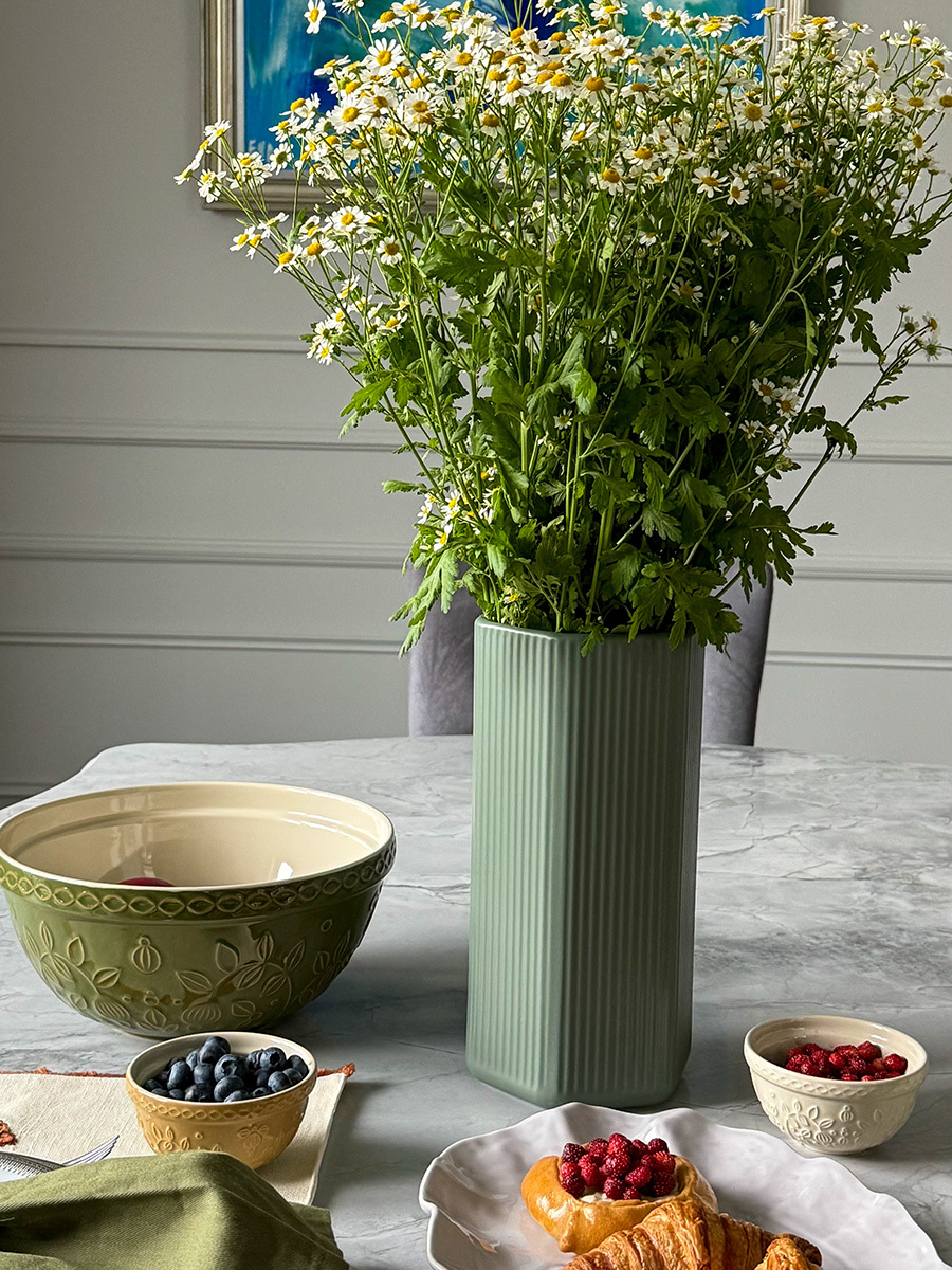 Миска зеленого цвета с рельефным узором Ягоды Тайги из коллекции Russian North облегчит процесс приготовления блюд и подойдет для сервировки. Посуда предназначена для замешивания теста, смешивания ингредиентов, а также подачи салатов или фруктов. Изделие украшено рельефным растительным узором в виде стилизованных веточек с ягодами и листьями.