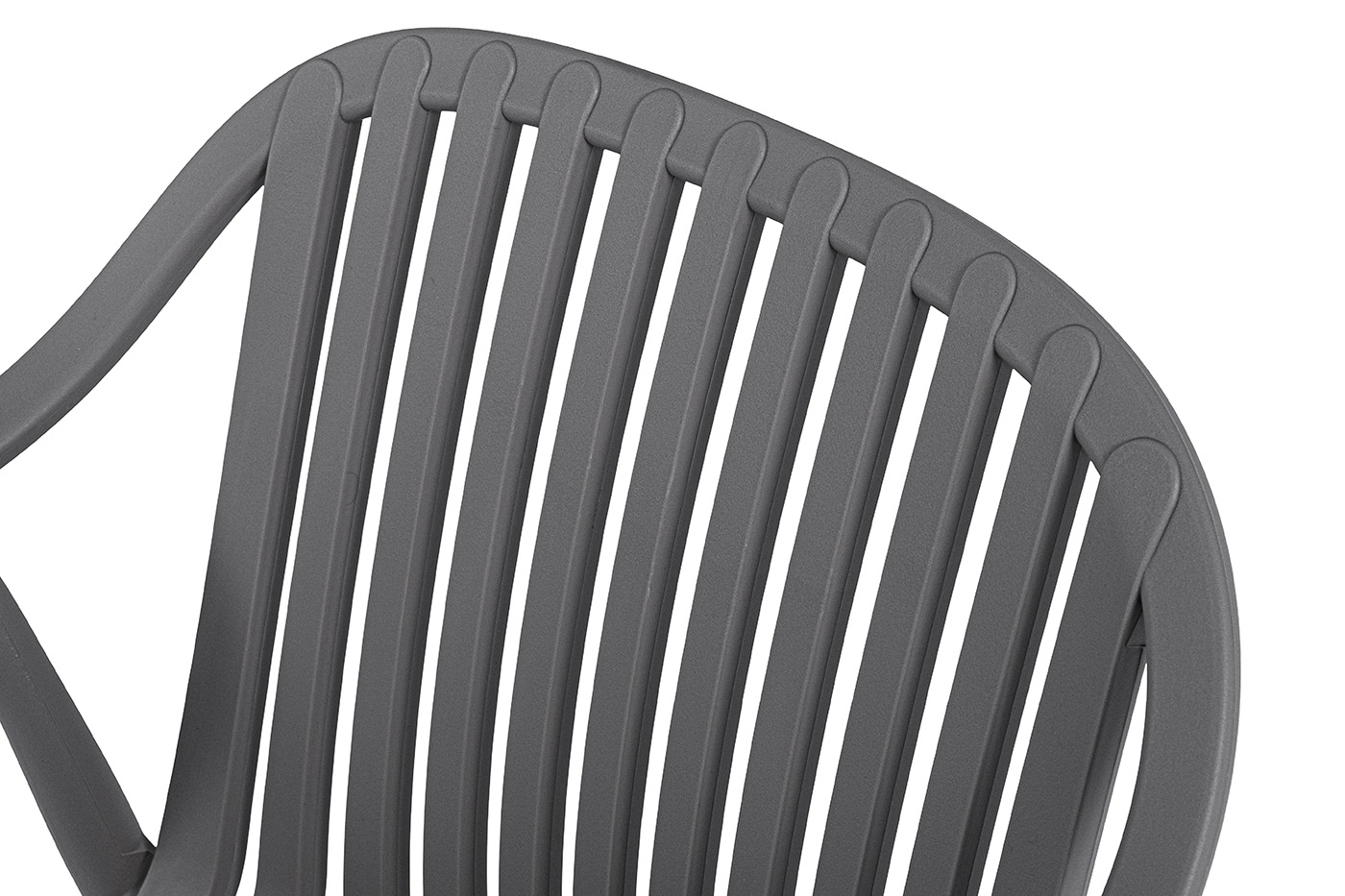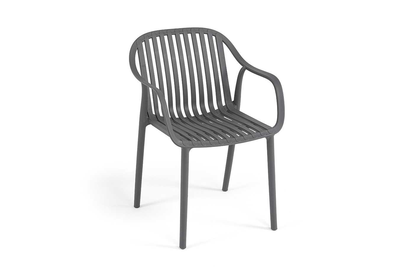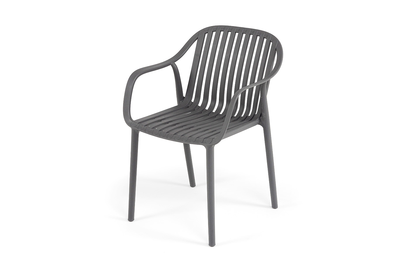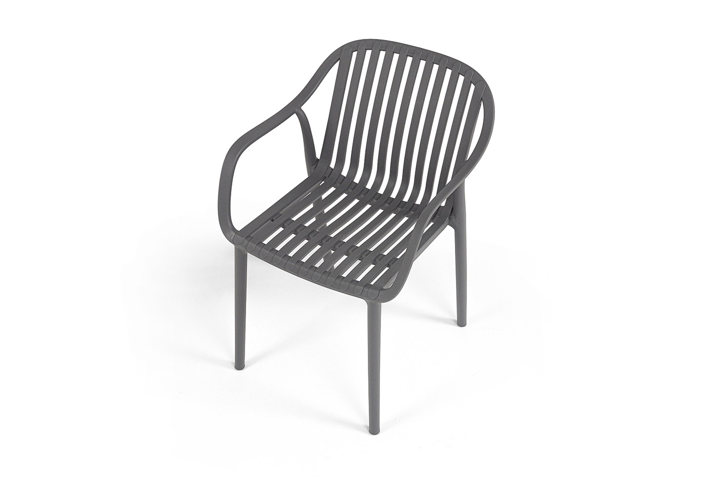 Стулья изготовлены из полипропилена, прочного и стойкого пластика, устойчивого к УФ-излучению, благодаря этому стул сохраняет свой первоначальный вид и не выцветает на солнце даже несмотря на активную эксплуатацию. Цвет - темно-серый.