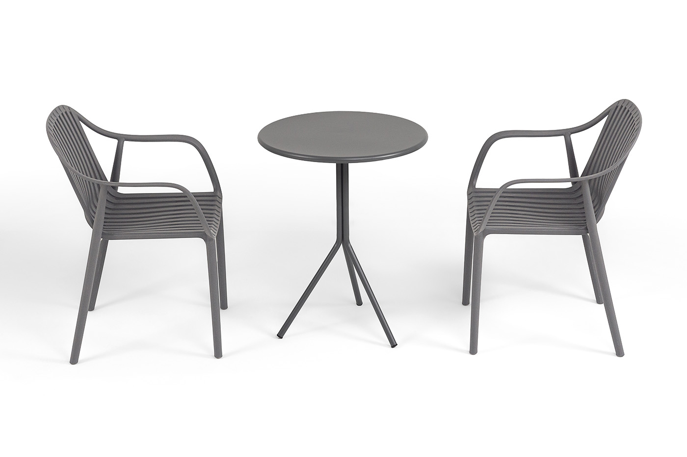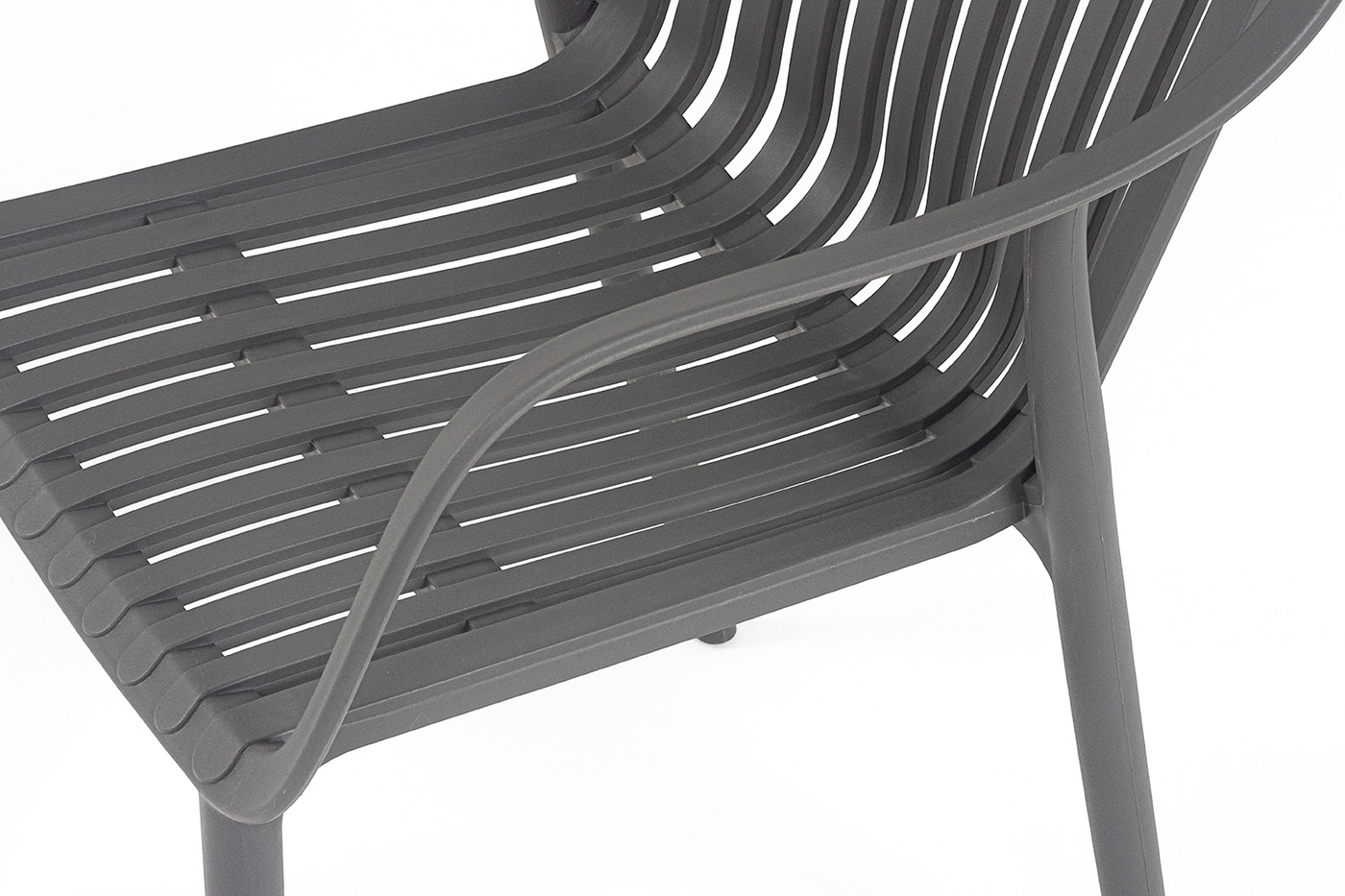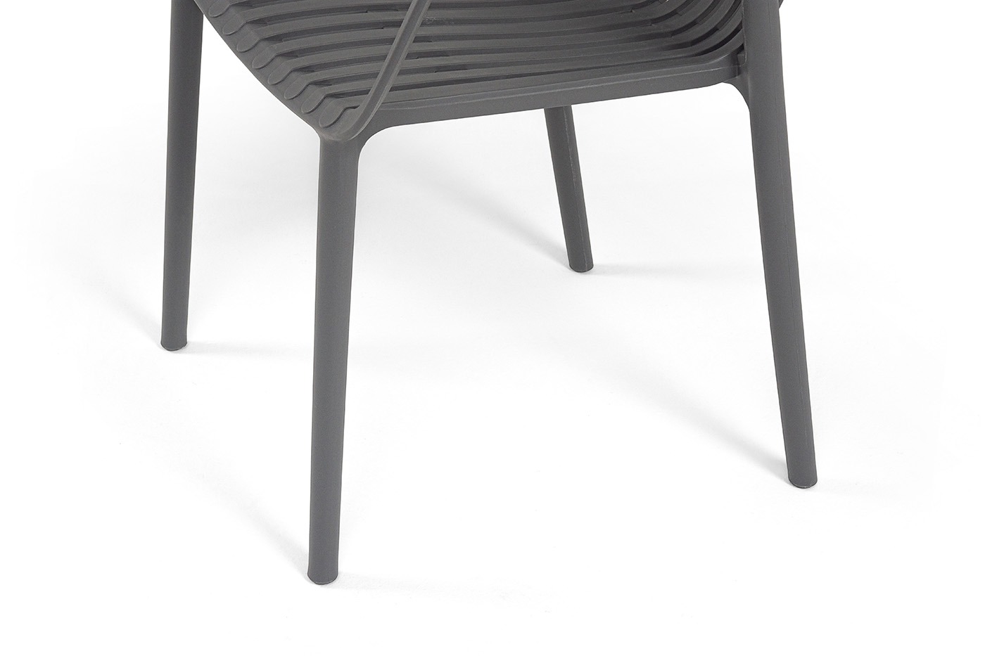 Стулья изготовлены из полипропилена, прочного и стойкого пластика, устойчивого к УФ-излучению, благодаря этому стул сохраняет свой первоначальный вид и не выцветает на солнце даже несмотря на активную эксплуатацию. Цвет - темно-серый.