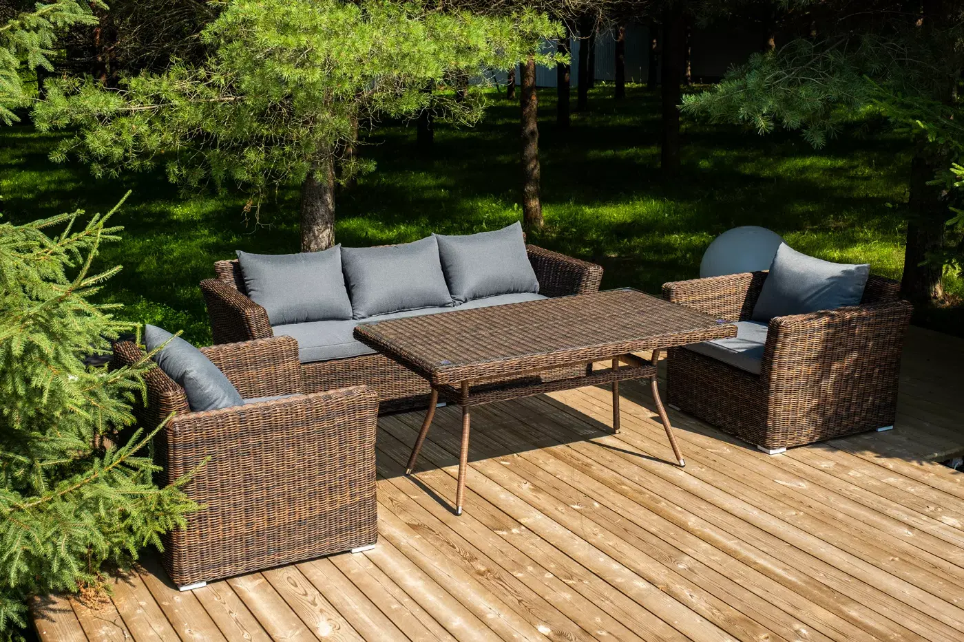 Премиальная обеденная группа «Моккачино» для обустройства зоны отдыха в саду, на террасе, веранде. Набор включает: