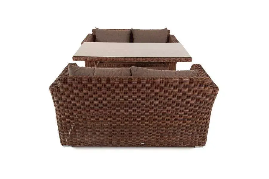 Обеденная группа комфорт-класса из синтетического ротанга «Мокко». В комплекте: 2 двухместных дивана «Капучино» - 1700×865×815 мм и обеденный стол на четверых «Латте» - 1600×900×750 мм.
