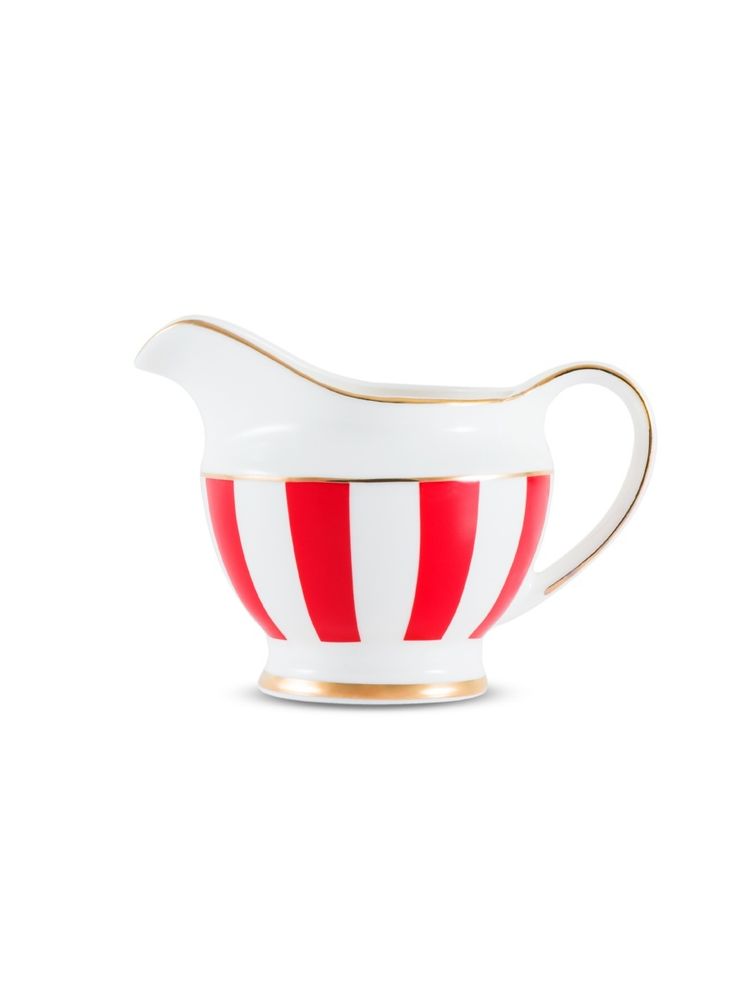 Молочник GIPFEL MODERN 3959. Объем 240мл. Молочник сделан из костяного фарфора белого цвета в красную полоску и золотистыми линиями, подчеркивающими его форму. Сочетается с другими товарами коллекции MODERN.
