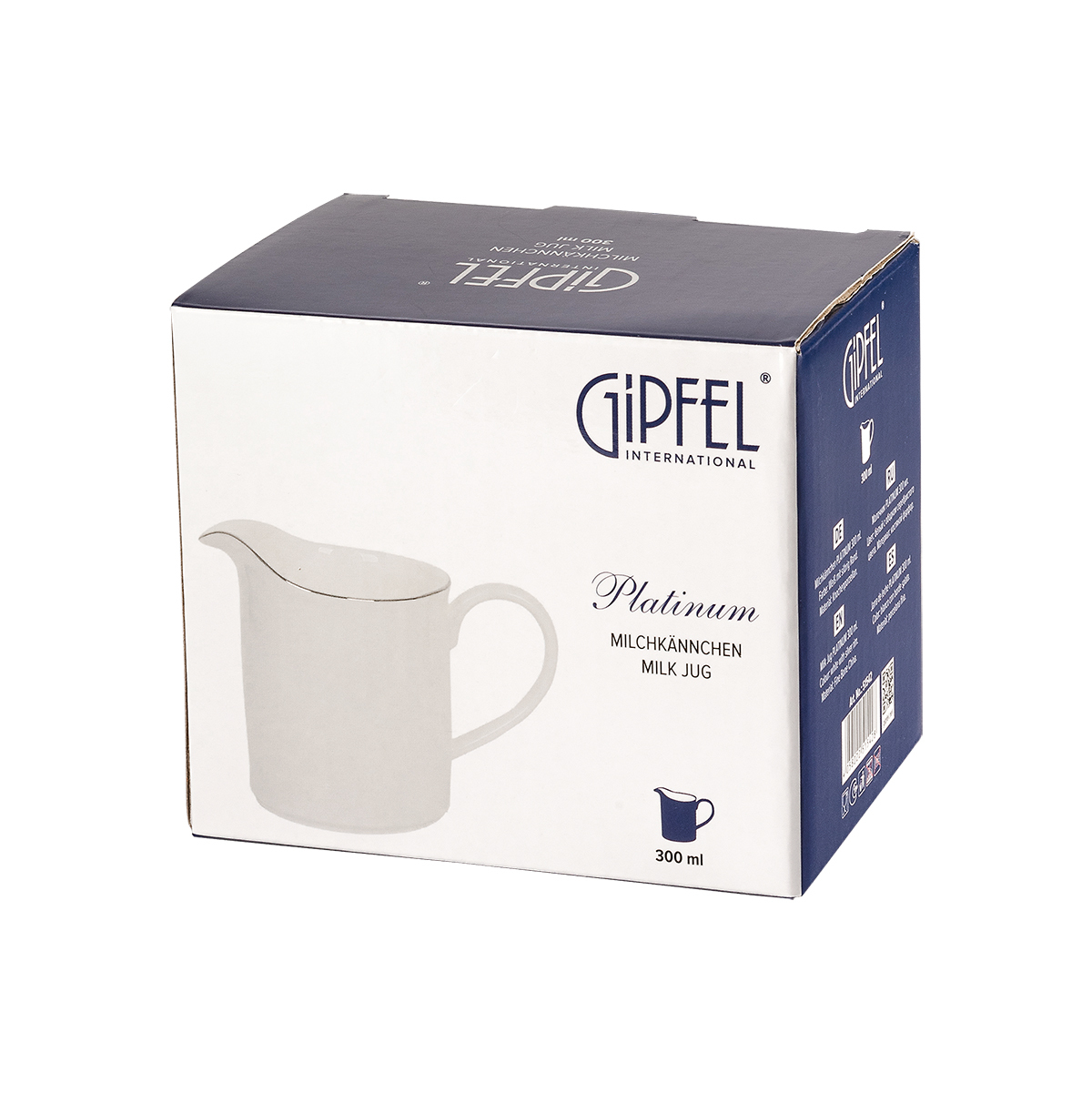 Молочник GIPFEL PLATINUM 51542. Молочник объемом 300 мл. Размер 8х8х10 см. Изготовлен из костяного фарфора с ободком серебристого цвета по краю. При сервировке сочетается с другой посудой коллекции PLATINUM. Размер упаковки 12х8,5х10 см; вес упаковки 254 гр.