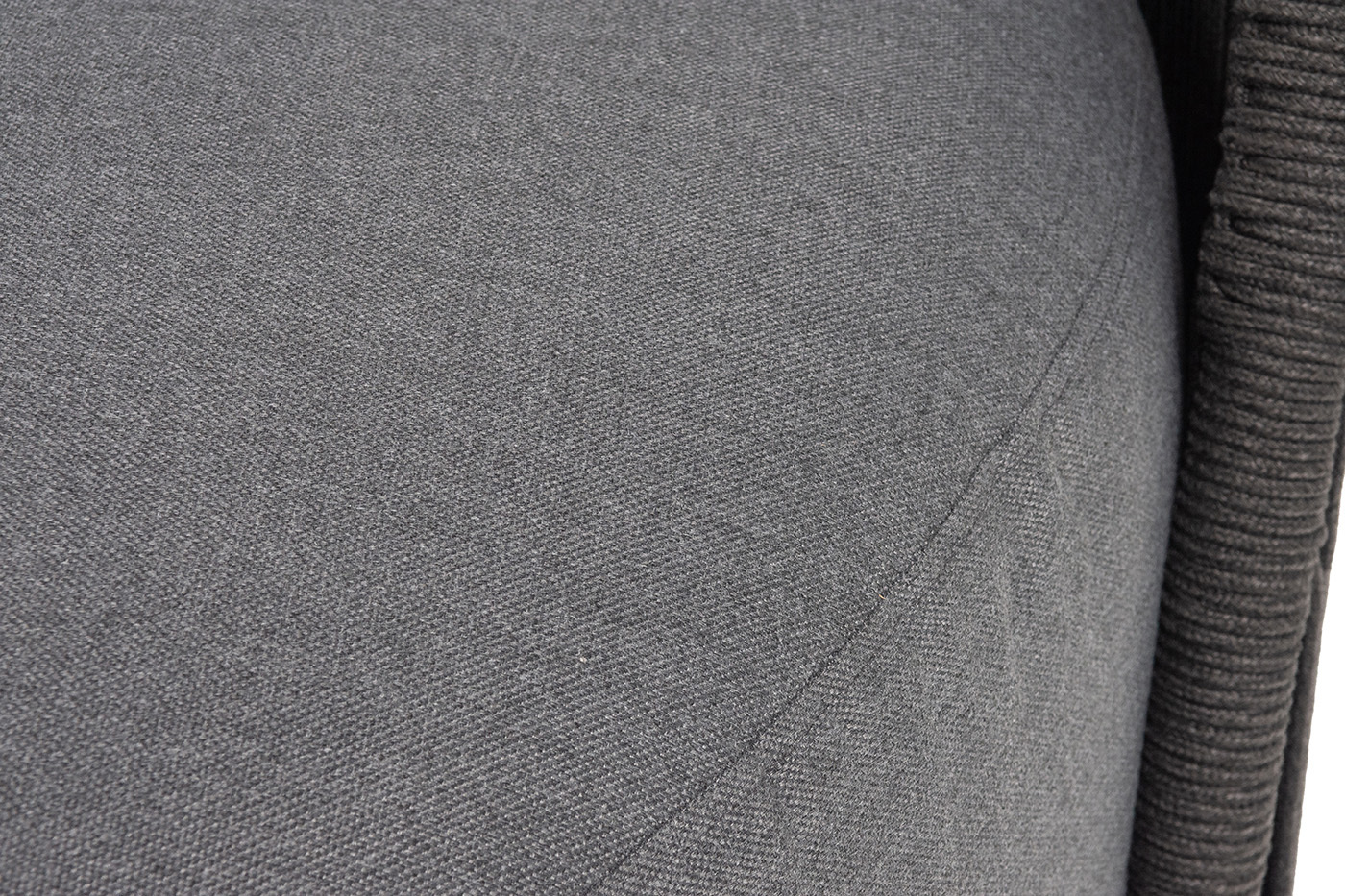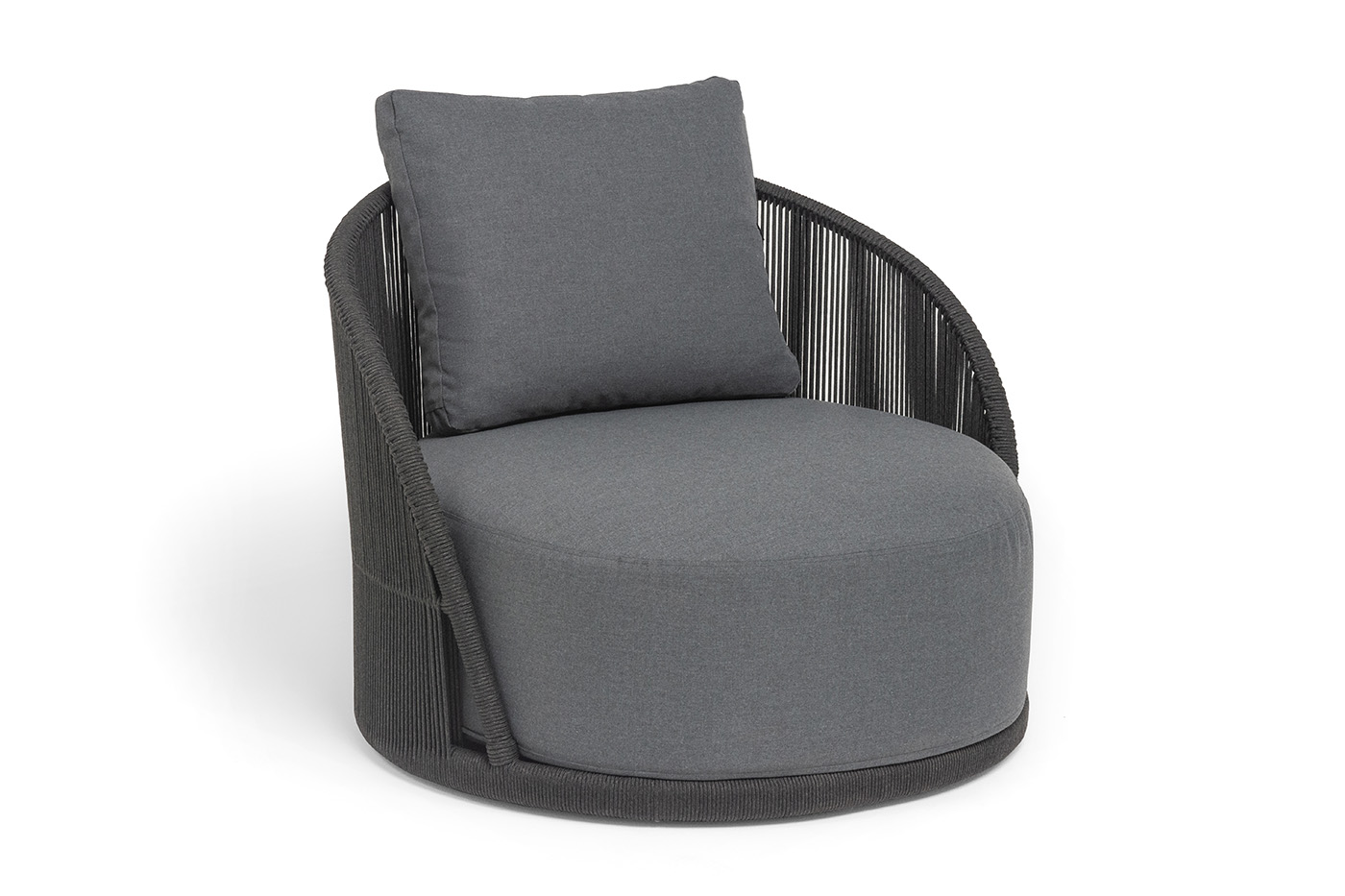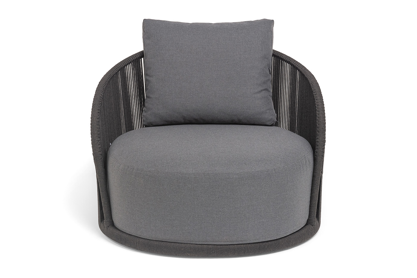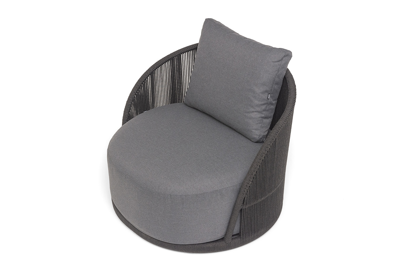 Боковины вручную оплетены роупом — эластичными синтетическими лентами из высокопрочных полиэфирных волокон. Однотонная темно-серая оплетка создает единый визуальный ансамбль с каркасом, подчеркивая лаконичность дизайна.