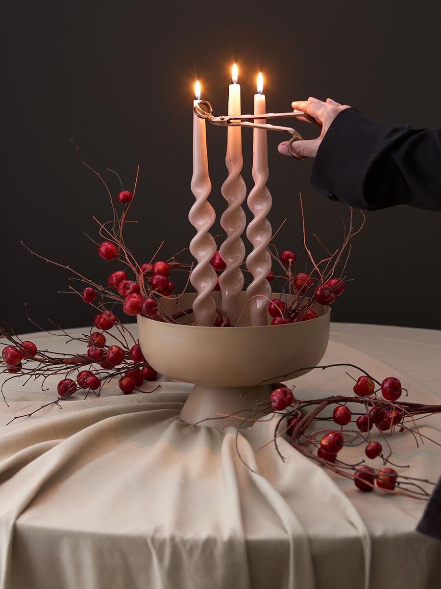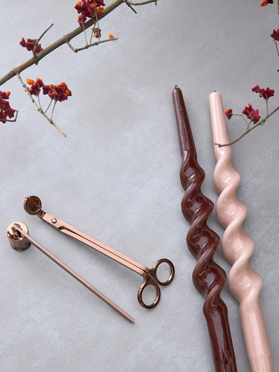 Набор аксессуаров для свечей из коллекции Essential создан для ценителей уюта и атмосферного освещения. В комплект входят ножницы для подрезания фитиля и специальный гаситель, который помогает безопасно погасить пламя без дыма и искр.