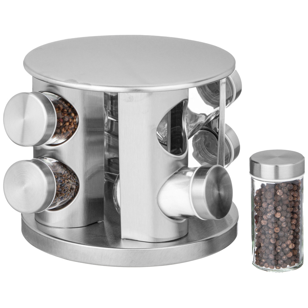 Банки для специй на вращающейся подставке - это удобный и практичный способ хранения и организации специй на вашей кухне, они отлично дополнят Ваш набор посуды. Вращающаяся подствка облегчит поиск нужной баночки. Гермитичные крышки сохранят неповторимый аромат Ваших любимых специй.