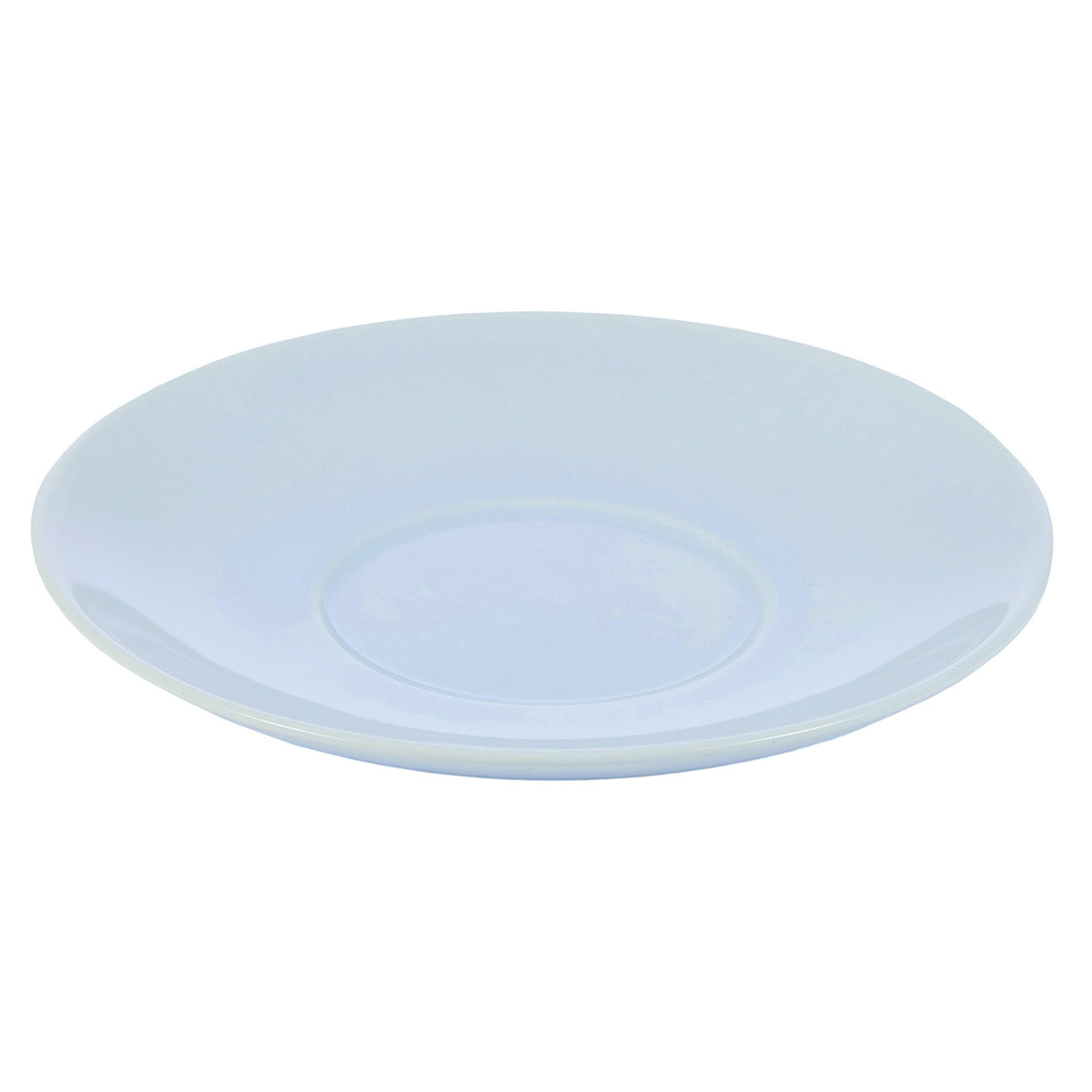 Блюдце выполнено в нежном молочно-голубом цвете.