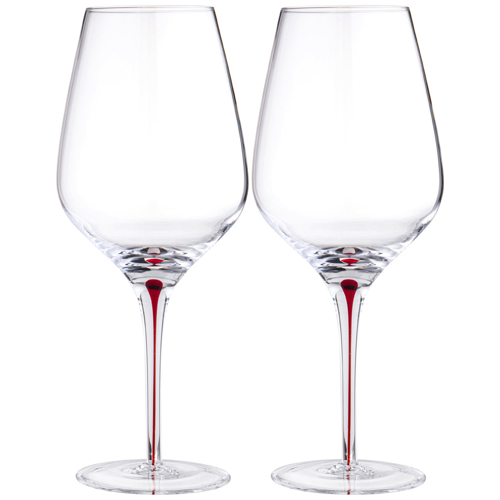 Бокалы украшены тонкими полосами ярких цветов (синий, красный), которые добавляют изюминку без перегрузки дизайна. Эти акценты не только декоративны, но и служат отличительной чертой каждой пары бокалов.