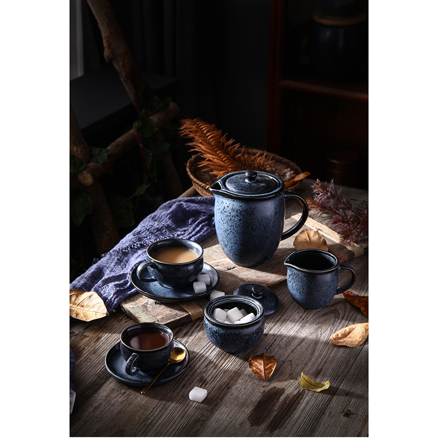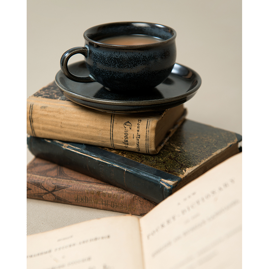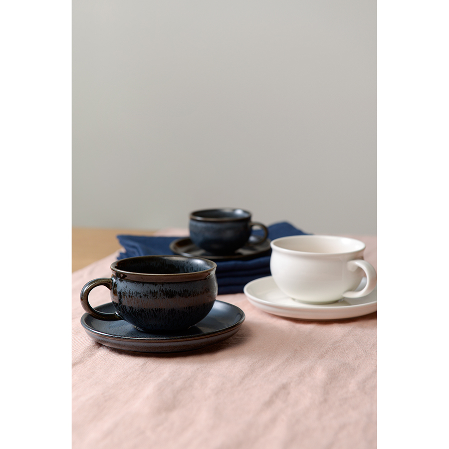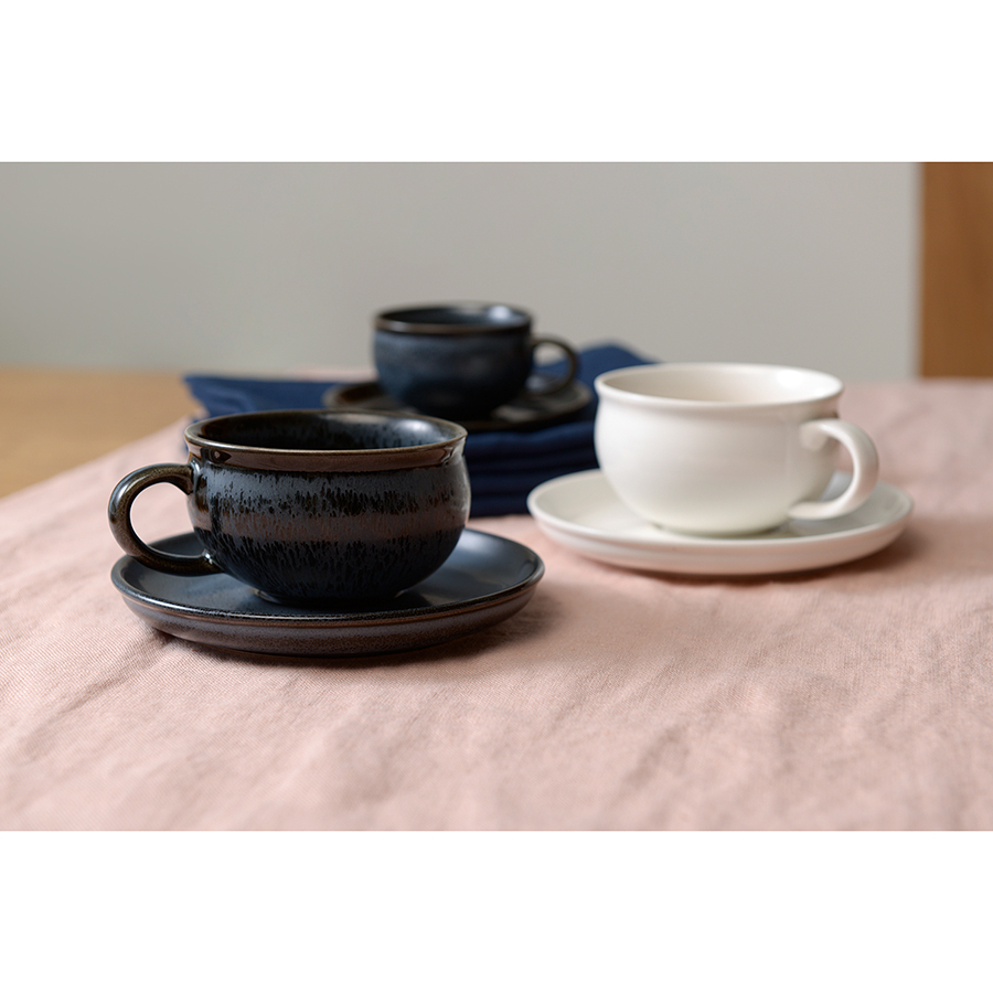 Чашки и блюдца серии Cosmic Kitchen от бренда Liberty Jones выполнены из высококачественного фарфора и покрыты реактивной глазурью, благодаря которой имеют неповторимую текстуру. Такая чайная пара станет настоящим украшением любой сервировки, будет органично сочетаться с посудой из стекла, бамбука и керамики. Материал изготовления неприхотлив в уходе, не впитывает загрязнения, является экологичным и безопасным для здоровья.