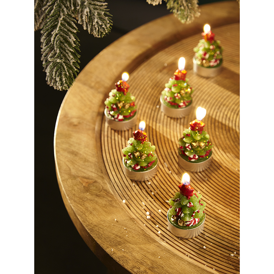 - Свечи выполнены в виде новогодних ёлок, что делает их не только источниками света, но и украшением интерьера.