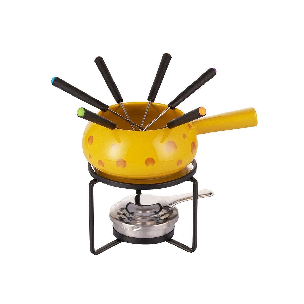 Набор для приготовления фондю GIPFEL 1989. Набор из 10 предметов. Размер емкости: 23х15х7,5 см. Материал: жаропрочная керамика. Каркас из металла. В наборе 6 вилочек для фондю. Грелка с крышкой для топлива.