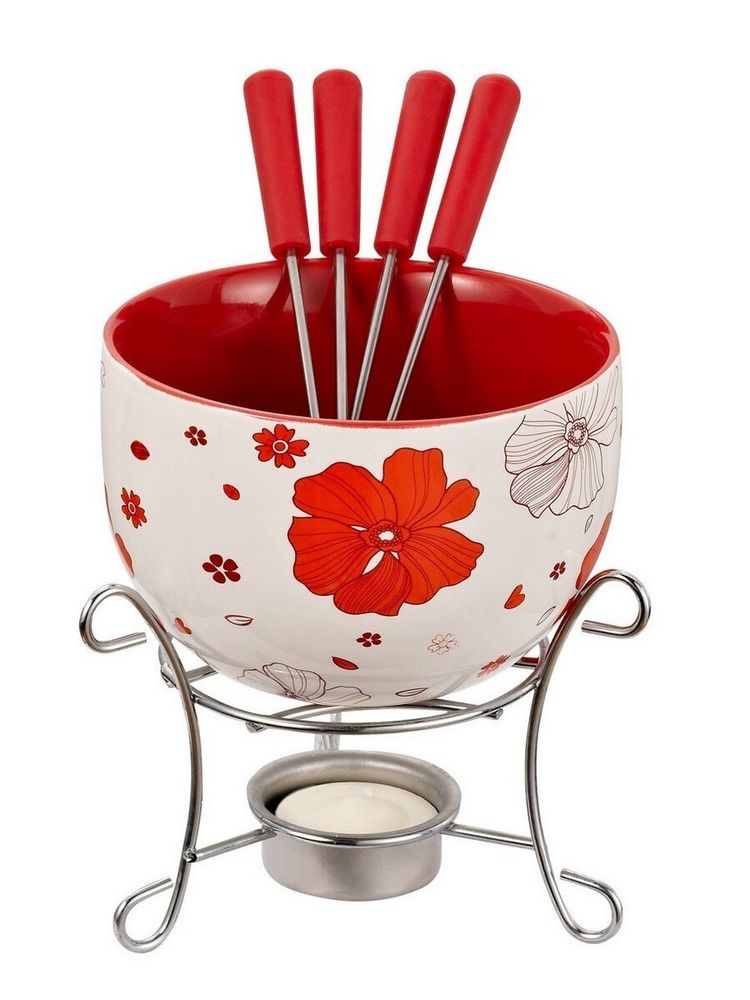 - Набор для приготовления шоколадного фондю 7 предметов MINOR- красная керамическая плошка