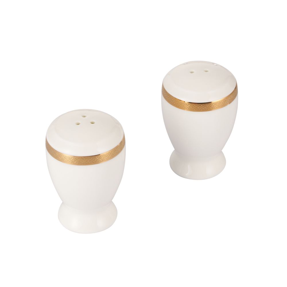 40984 GIPFEL Набор для соли и перца ARGENTO, 2 предмета: перечница и солонка. Цвет: белый с золотистым кантом. Материал: премиальный фарфор.