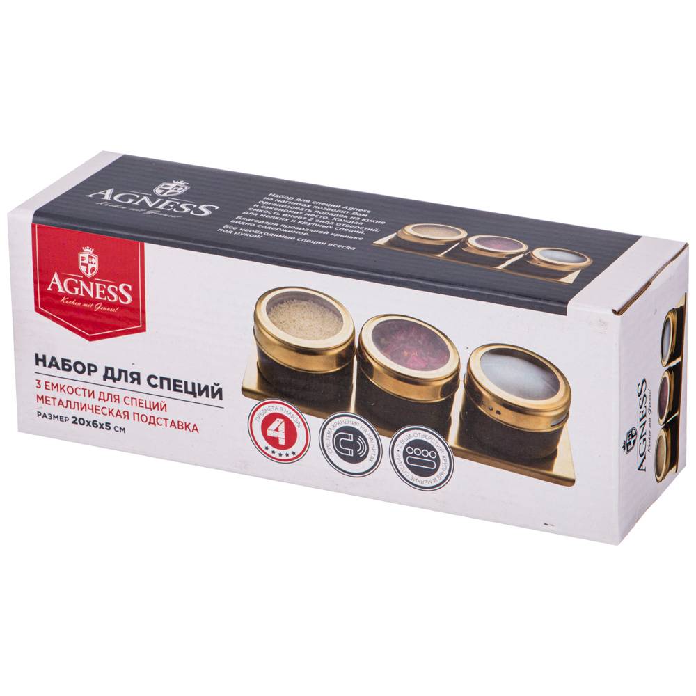 Набор для специй AGNESS – это отличное решение, позволяющее удобно использовать специи и приправы во время приготовления.