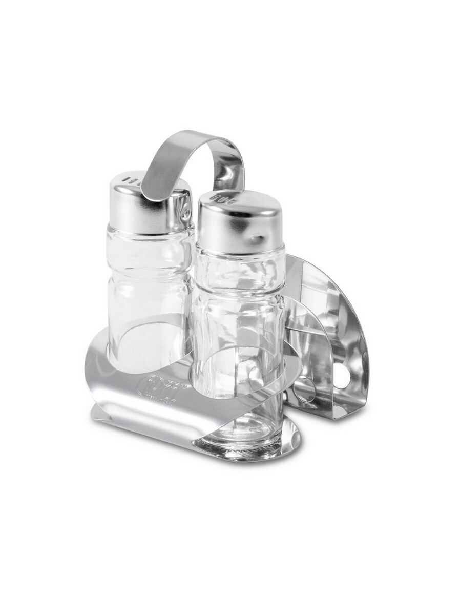 Набор для приправ GIPFEL 5368. В наборе 3 предмета: стеклянные солонка и перечница на стальной подставке. Подставка оснащена ручкой для переноски, на корпусе фирменный логотип Gipfel. Также на подставке располагается отделение для салфеток. Набор не займет много места на сервированном столе и позволит хранить специи в одном месте.