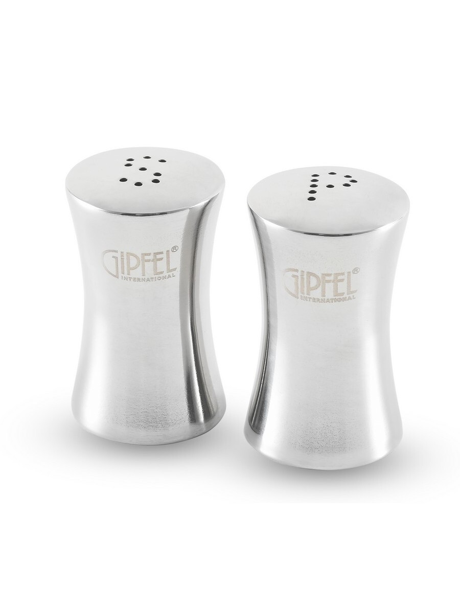 Набор из солонки и перечницы GIPFEL 6295. Набор состоит из двух одинаковых цилиндрических емкостей для специй: солонки 7х4см и перечницы 7х4см. Емкости различаются буквами "S" и "P", оригинально выполненными дырочками на поверхности, что позволит их не перепутать на сервированном столе. Набор выполнен из хирургической нержавеющей стали 18/10. Толщина стенок приборов 0,6мм.