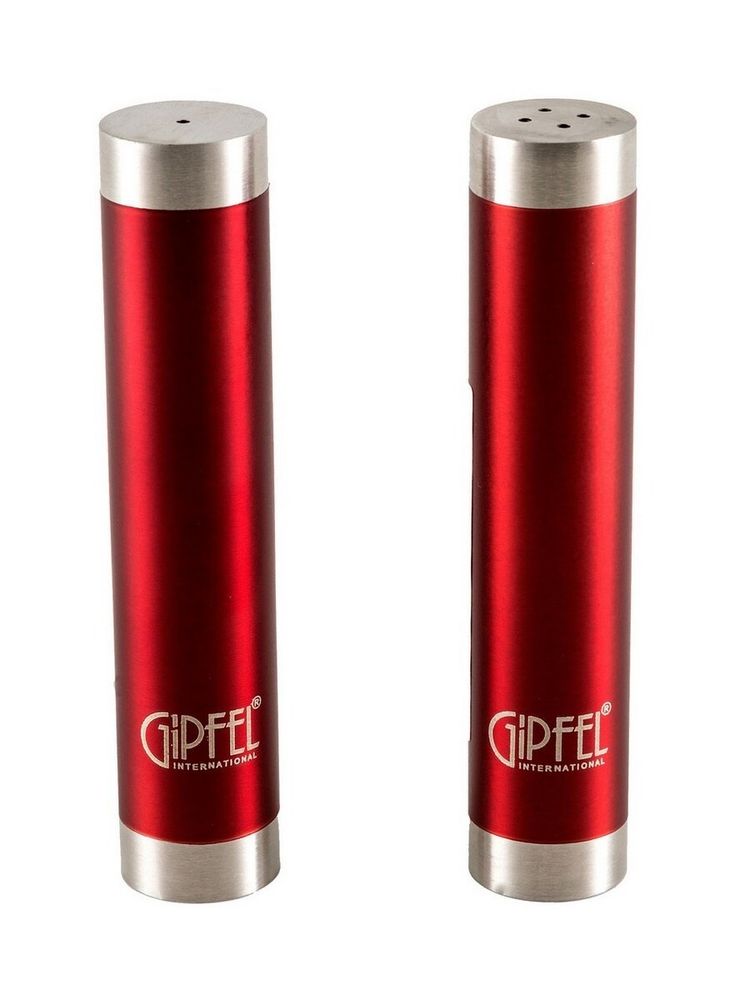 Набор для приправ Gipfel 9139. В наборе солонка и перечница размером 2,5х12 см. Предметы сделаны из нержавеющей стали красного цвета. На корпусе фирменный логотип. Набор упакован в красочную коробку Gipfel.