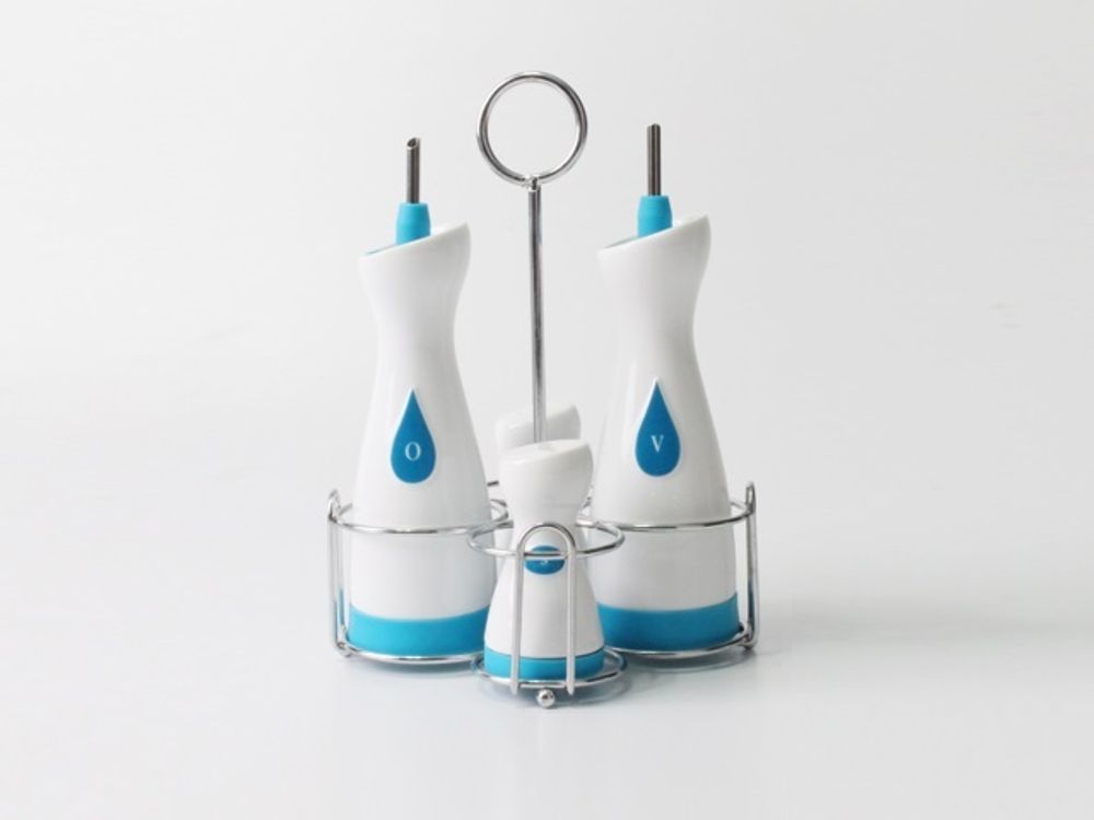 Для владельцев ярких кухонных гарнитуров, сложно подобрать не менее оригинальные дополнительные элементы, которые только подчеркнут стильный дизайн. Оригинальный и удобный набор для приправ и специй Gipfel Grace станет полезным аксессуаром на кухне. Сочетание голубого и белого цвета дарит свежесть и легкость, создавая уютную атмосферу. В комплект входит две емкости для сыпучих приправ (соль и перец) и две емкости для масла и уксуса. Подставка из нержавеющей стали позволяет легко перемещать набор. Аксессуар пригоден для сервировки как повседневного, так и праздничного стола.