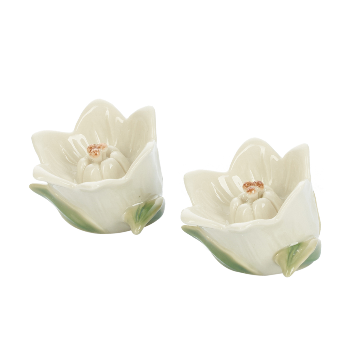 Набор для специй Gipfel LILY BLOSSOM 41533 6x6x5 см. Набор выполнен в виде цветков белой лилии с зелеными листочками. Материал: фарфор.