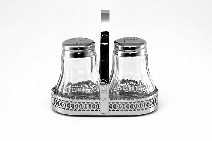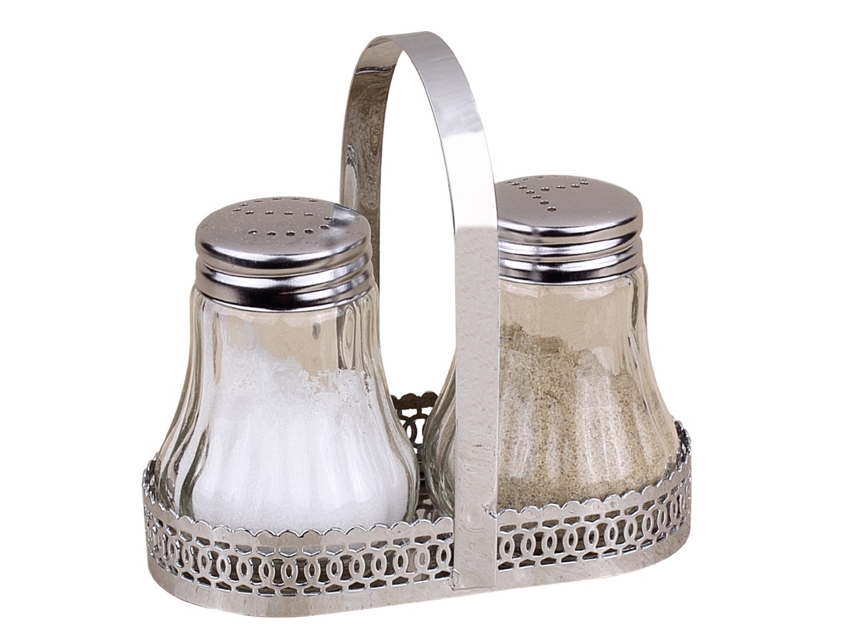 - 3 предмета- размеры 10,5х5х10,5 см- стеклянные солонка, перечница- стальная подставка