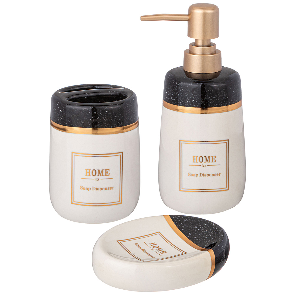 Секрет удачного оформления любого интерьера — яркие аксессуары! Набор предметов для ванной не только внесёт изюминку в интерьер, но и придаст ему стильность, уют и ощущение завершенности. А так же значительно облегчит хранение некоторых принадлежностей. В комплект входят: дозатор для жидкого мыла, стакан для зубных щеток и мыльница.