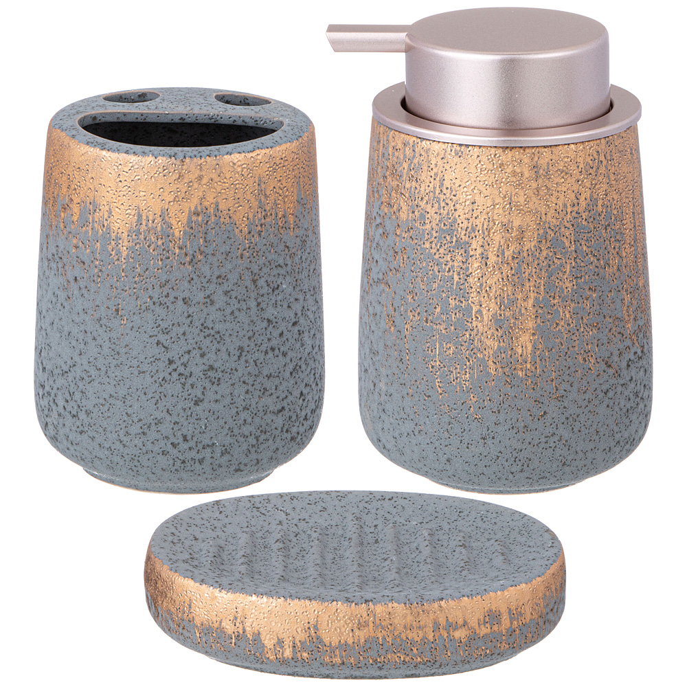 Секрет удачного оформления любого интерьера — яркие аксессуары! Дозатор для ванной не только внесёт изюминку в интерьер, но и придаст ему стильность, уют и ощущение завершенности. В комплект входит дозатор для жидкого моющего средства, мыльница и стакан для зубных щеток.