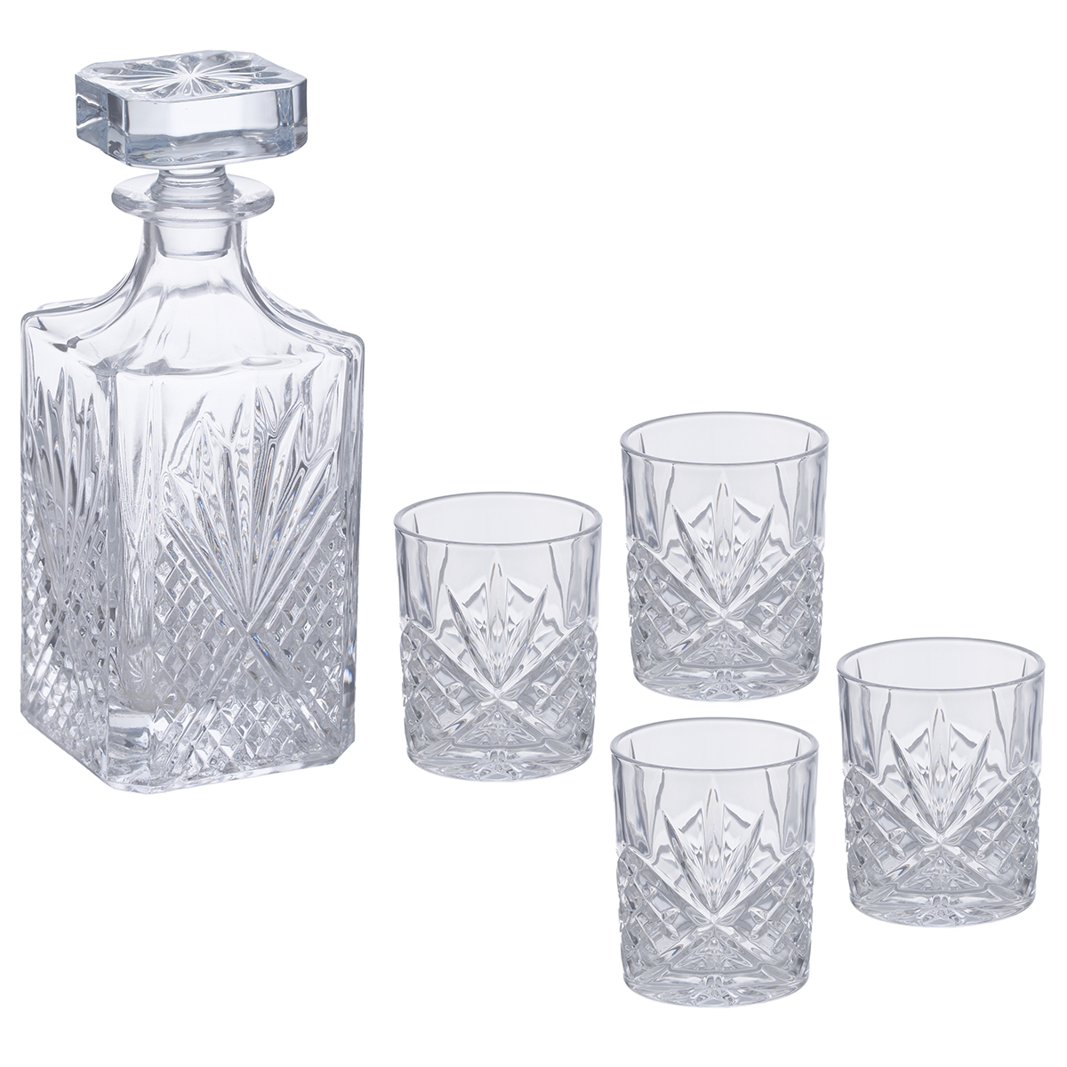 Набор для виски Gipfel Muse 52353 5 предметов: графин 700 мл, 4 бокала 275 мл. Бокал: вес - 348 г, размер - 8x10 см, размер дна - 7 см; графин: вес - 1645 г, высота - 23 см, размер дна - 9x9 см, диаметр горлышка - 3 см, размер пробки - 6x6 см.