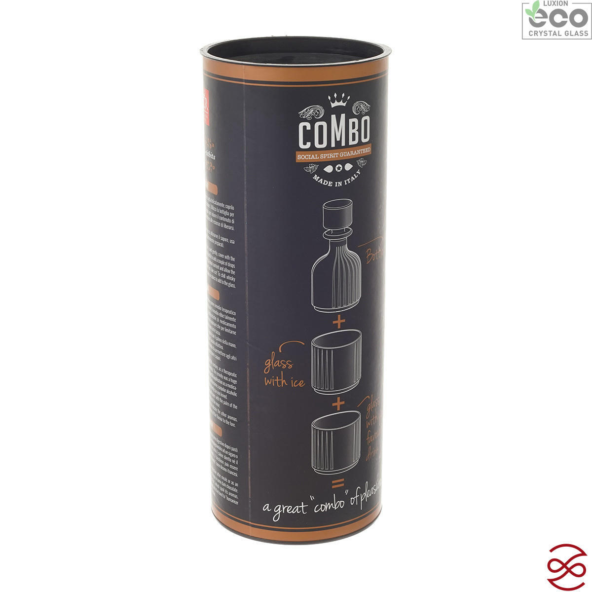 Функциональный, стильный и оригинальный набор 3 в 1 от итальянского производителя. Combo – это комбинация из трех предметов: 2 стаканов и удобного штофа. Можно по-разному миксовать содержимое стаканов: класть в них лед, наливать виски или чередовать то и другое. Как использовать данный набор – личное дело каждого. Ясно только одно – этот набор должен быть у каждого любителя виски и другого элитного алкоголя.