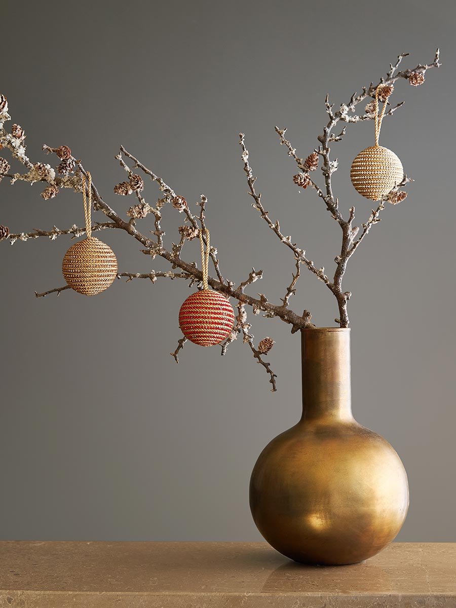 Словно связанные заботливыми руками, эти шарики идеально подходят для новогодней елки, оформление которой выдержано в стиле ретро. Мягкие оттенки игрушек, традиционное плетение и легкий блеск наполняют окружающую атмосферу теплом и уютом.
