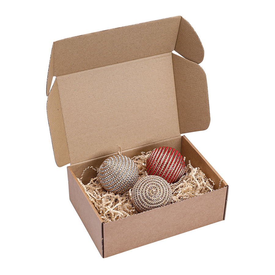 - Каркас шариков декорирован веревочками, сплетенными из полиэстеровых нитей, которые со временем сохраняют первоначальный внешний вид и насыщенность цвета.
