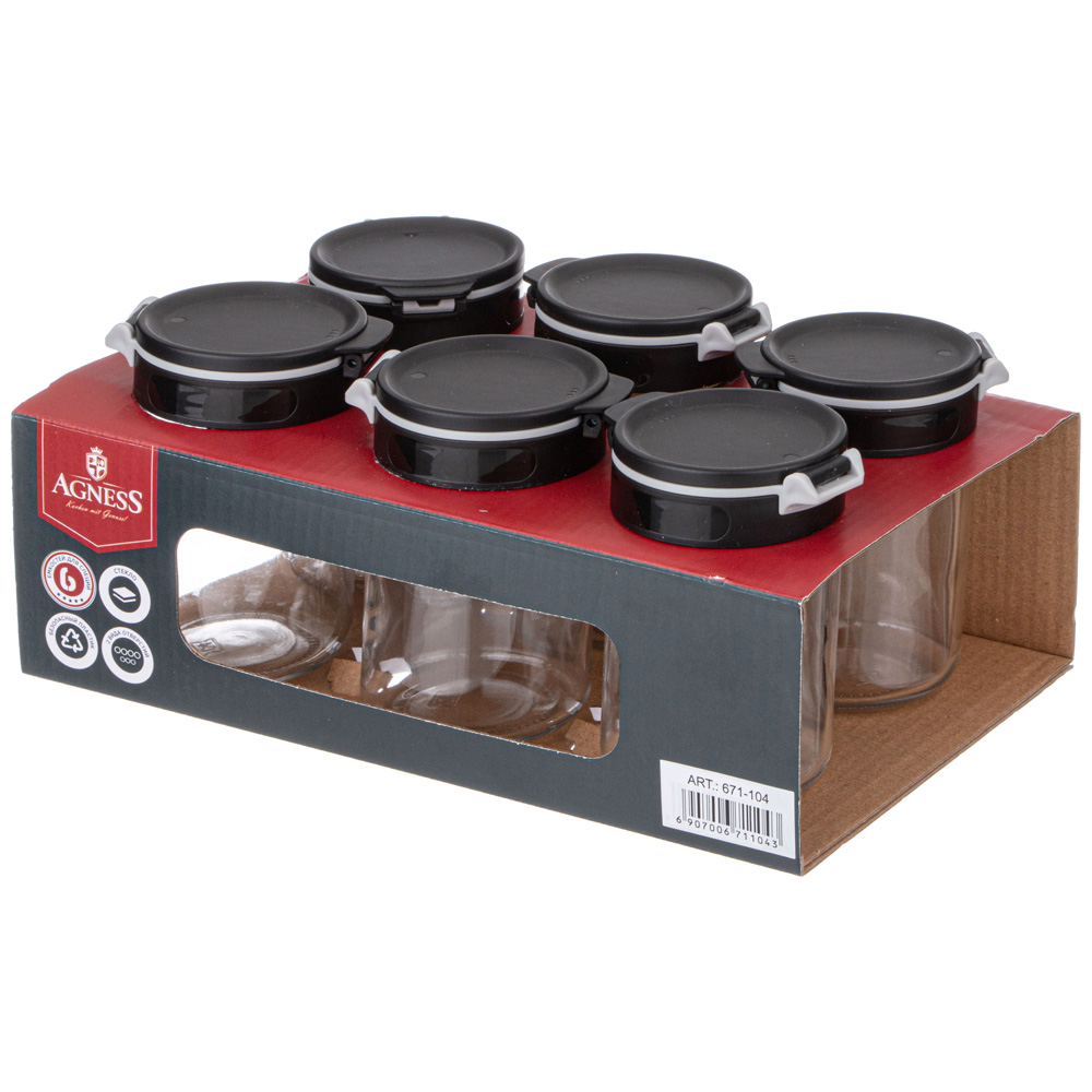 НАБОР ЕМКОСТЕЙ ДЛЯ СПЕЦИЙ 6ШТ 200МЛ AGNESS включает в себя стеклянные емкости, предназначенные специально для удобного и долговременного хранения специй на кухне . Этот набор является не только полезным, но и стильным дополнением кухонного интерьера. Все баночки для специй выполнены из стекла – прочного и надежного материала для хранения пищевых продуктов. Они герметично закрываются, предотвращая попадание влаги и посторонних запахов. Это отличное решение для организации кухонного хранения и подарок для тех, кто любит готовить и экспериментировать с различными вкусовыми сочетаниями.