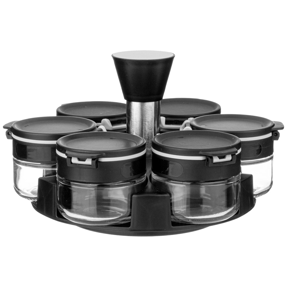 НАБОР ЕМКОСТЕЙ ДЛЯ СПЕЦИЙ 6ШТ 85МЛ НА ПОДСТАВКЕ AGNESS -включает в себя стеклянные емкости, предназначенные специально для удобного и долговременного хранения специй на кухне , и стильную подставку. Этот набор является не только полезным, но и стильным дополнением кухонного интерьера. Все баночки для специй выполнены из стекла – прочного и надежного материала для хранения пищевых продуктов. Они герметично закрываются, предотвращая попадание влаги и посторонних запахов. Это отличное решение для организации кухонного хранения и подарок для тех, кто любит готовить и экспериментировать с различными вкусовыми сочетаниями.