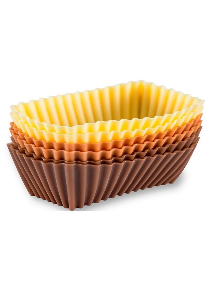 Набор из 6 прямоугольных силиконовых форм для выпечки Gipfel 0354. Размер форм 8,5 смх4 см. Формы подойдут для выпечки воздушных кексов. Формы желтого, коричневого и оранжевого цветов. Выполнены из жаропрочного силикона.