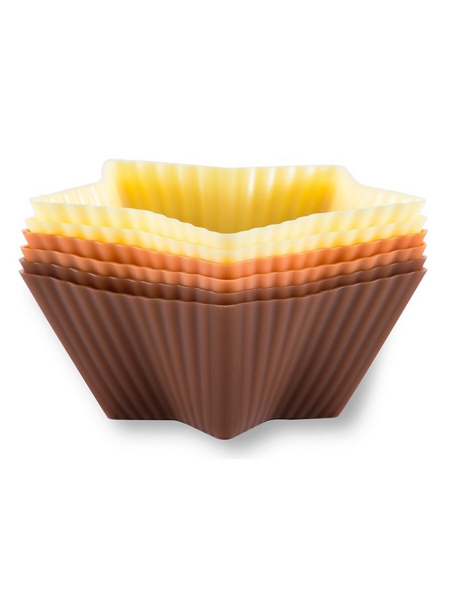 Набор из 6 силиконовых форм для выпечки Gipfel 0357. Размер форм 7,5х3 см. Подойдут для выпечки воздушных кексов в форме звезды. Формы желтого, коричневого и оранжевого цветов. Выполнены из жаропрочного силикона.