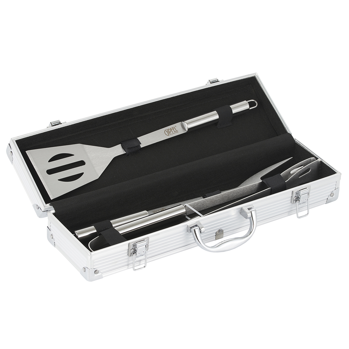Набор для барбекю Gipfel Brig 51253 из 3 предметов в алюминиевом кейсе. В наборе: лопатка 37 см, щипцы 37 см, вилка для мяса 37,5 см из нержавеющей стали.