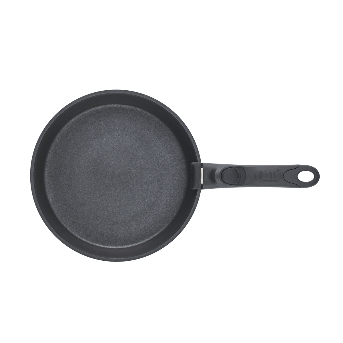 В набор входят 3 сковороды (20х4,5см, 24х5см, 28х5,3см) а также съемная ручка. У сковород двухслойное антипригарное покрытие Whitford Xylan Plus. Сковороды многофункциональны, так как со снятой ручкой они превращаются в формы для запекания в духовке: в них можно готовить овощные запеканки, томить мясо или выпекать бисквит. Диаметр дна сковород: 17см, 20см, 24см. Для сковород подойдут крышки из коллекции Paula.