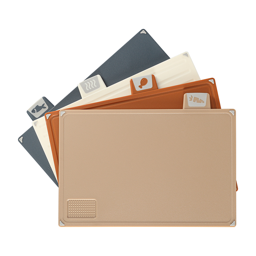 - Каждая доска в наборе имеет определенный цвет и специальную иконку с подсказкой назначения, что помогает исключить пересечение продуктов и упрощает процесс готовки.