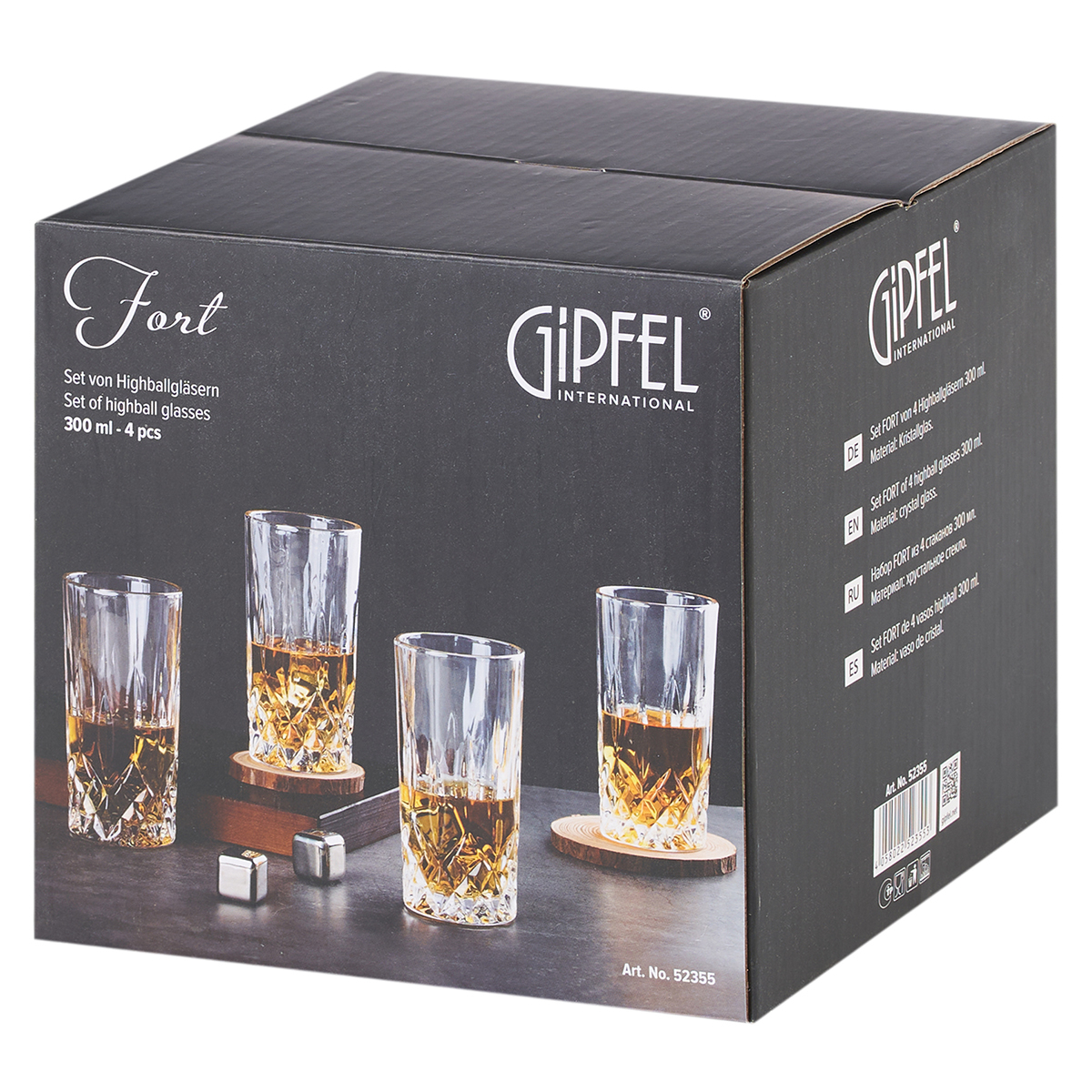 Набор из 4 стаканов для виски Gipfel Fort 52355 300 мл. Материал: хрустальное стекло.