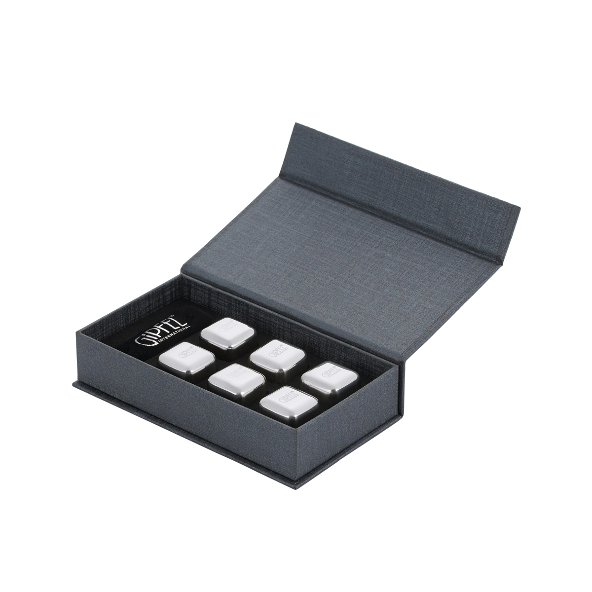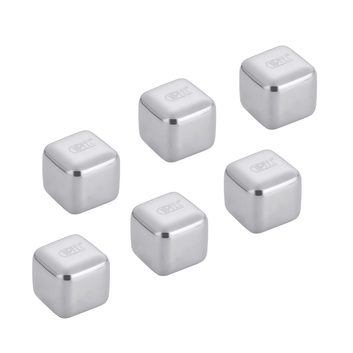 Набор из 6 стальных кубиков GIPFEL 51008 26x26х26мм для охлаждения напитков с вельветовым чехлом. Материал: нержавеющая сталь 18/10.
