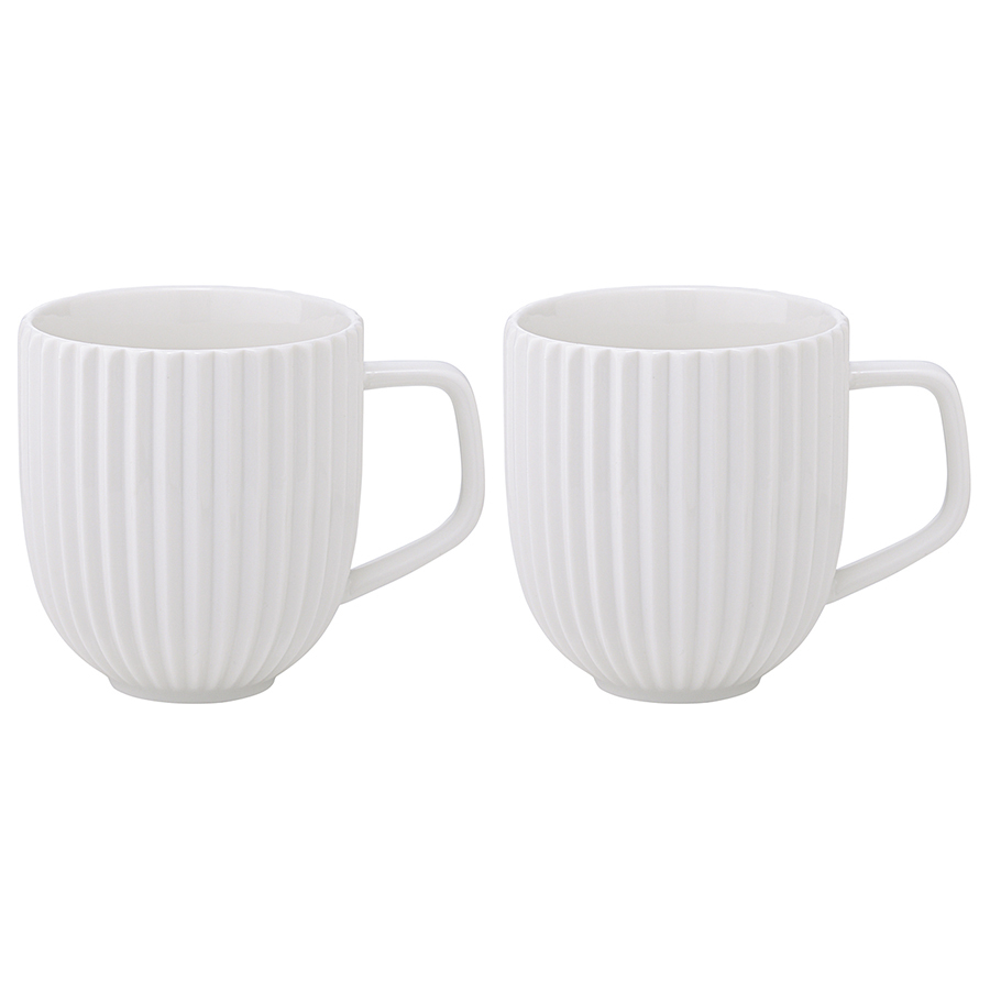 Набор из двух фарфоровых кружек белого цвета — для тех, кто любит большие порции и долгие чаепития. Несмотря на свой размер, кружки очень легкие и удобно ложатся в руку, а рифленая поверхность добавляет дизайну утонченность и изящество. А еще они идеально сочетаются с другой посудой из серии Edge — тарелками, салатниками, сахарницами, вазами и другими предметами.
