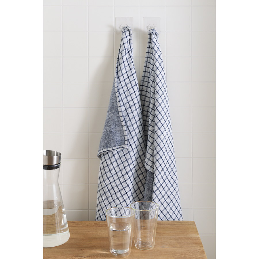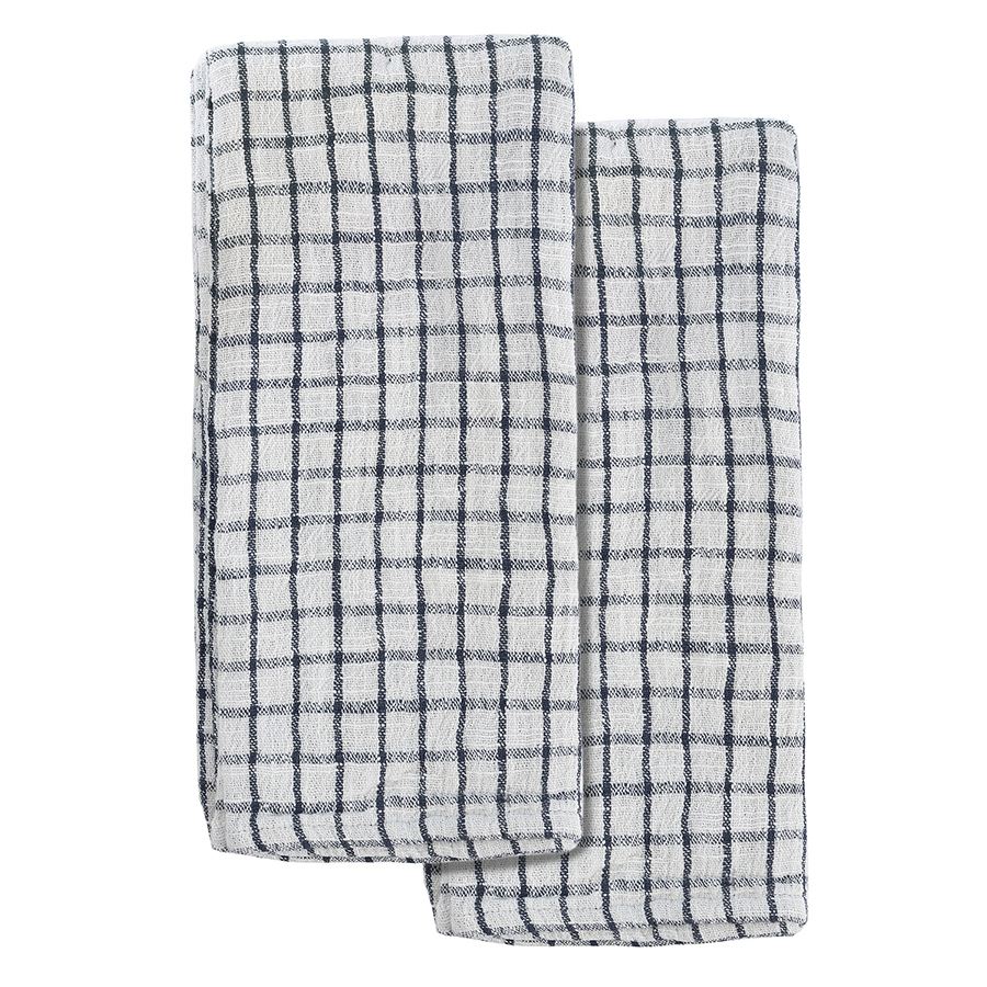 Набор из двух муслиновых полотенец с графичным дизайном из коллекции Essential станет помощником на кухне. Полотенца в серо-синей гамме имеют более темную лицевую сторону, а с изнаночной украшены вытянутой клеткой. Хлопковый муслин отлично впитывает и испаряет влагу, не деформируется и не линяет при стирке, на нем не образуются катышки. Подходит для ежедневного использования и не оставляет ворсинок при протирании посуды.