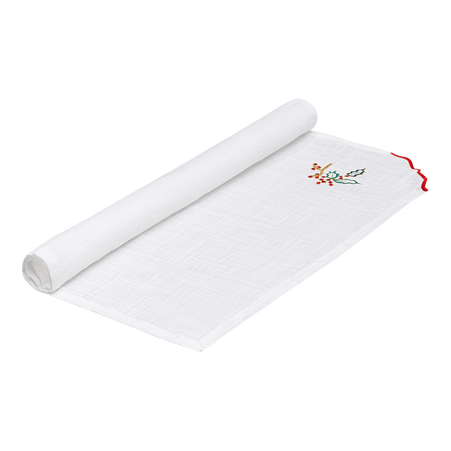 Салфетки под приборы Festive wreath из коллекции New Year Essential помогут сделать акцент на деталях сервировки и создать особую атмосферу за столом. Вышивка в виде хвойных веточек и ягод воплощает символику праздника, напоминая о новогоднем волшебстве, подарках и уютных вечерах в кругу семьи и друзей.