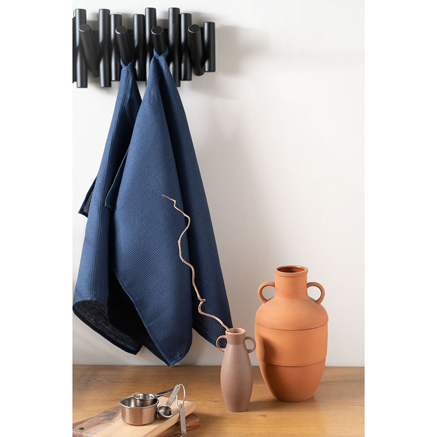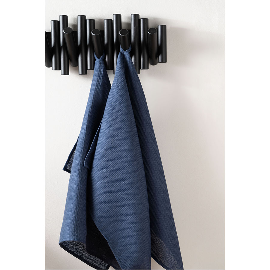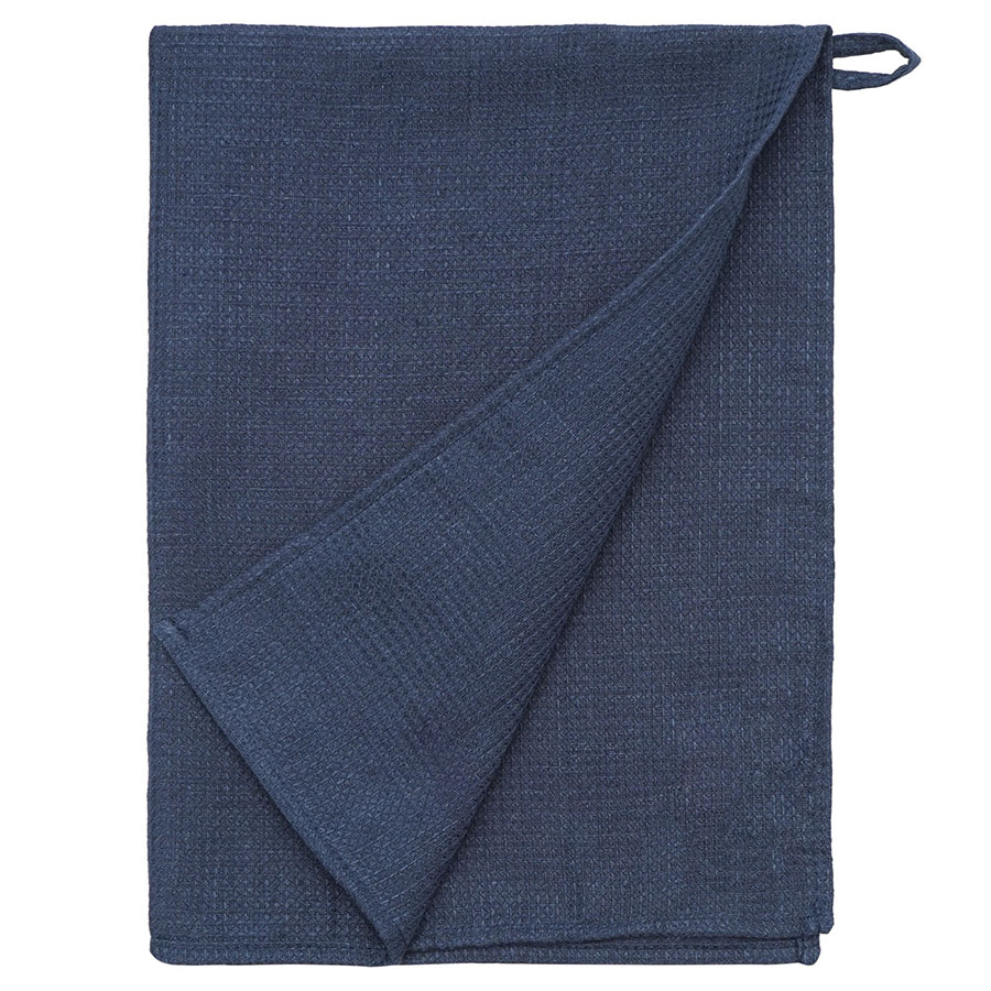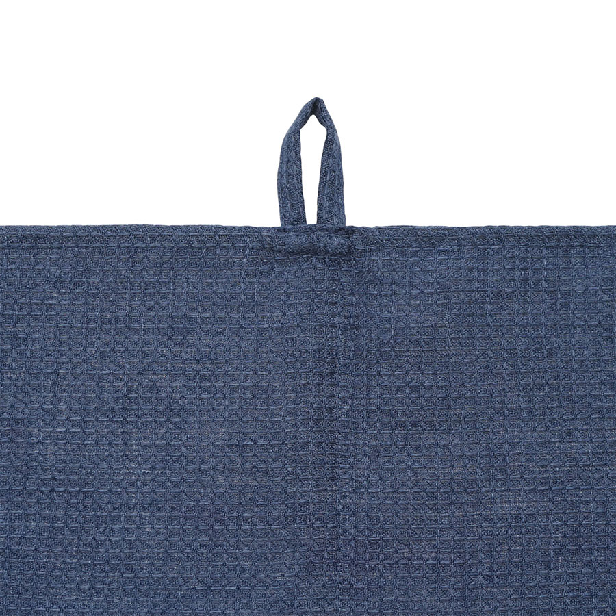 Набор из двух вафельных полотенец темно-синего цвета для кухни из коллекции Essential – отличный вариант для ценителей спокойных природных оттенков. Изделия изготовлены из умягченного льна, который хорошо впитывает влагу и быстро сохнет. Как известно, лен не только прекрасно смотрится в интерьере, но и предотвращает развитие бактерий, что особенно актуально для кухни и столовой. Полотенце можно повесить на крючок, благодаря удобной петельке.