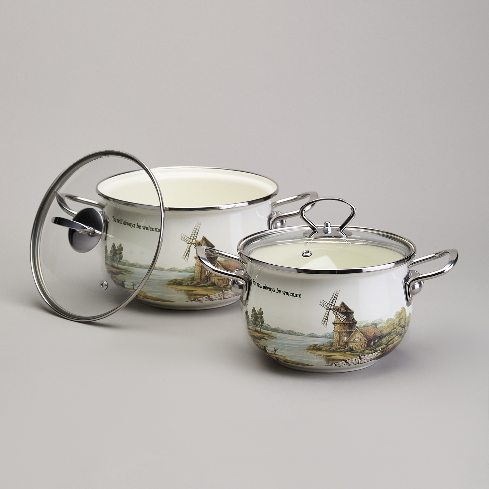 • Стильный и нежный декор эмалированной посуды украсит любую кухню.